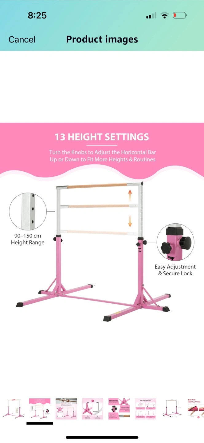 Get your little gymnast ready to shine with this home kip bar! It supports up to 150 kg thanks to its rugged and stable structure. It features triangular steel braces and an extended steel base for extra stability. The height is adjustable from 90-150 cm with 13 different height settings. Also included is a Milliard balance beam. Selling as a set $300 for both the gymnastics bar and balance beam