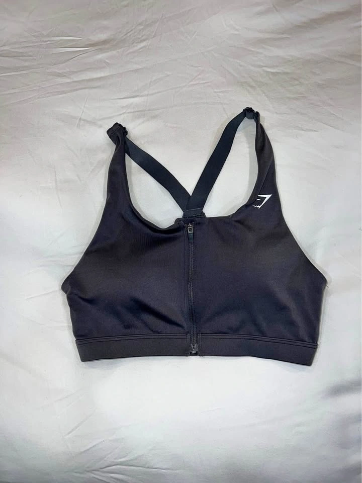 Gymshark sports bra with zipper in grey. Size small. Good used condition. Pickup in North Delta or drop off in Ladner can be arranged.
