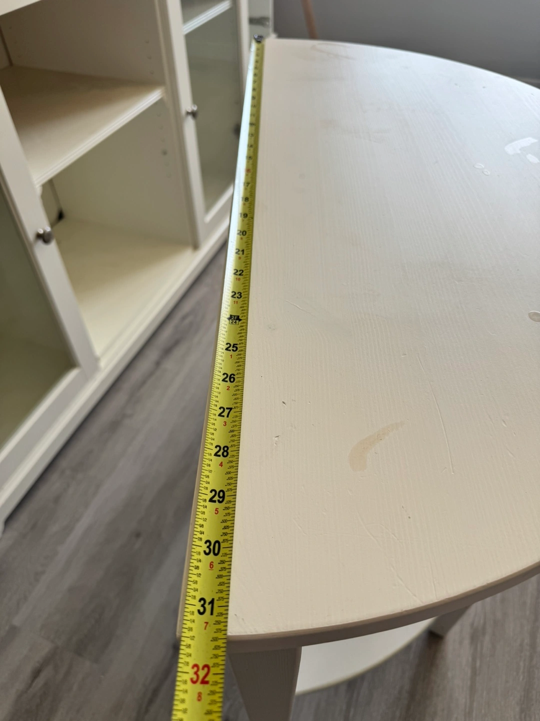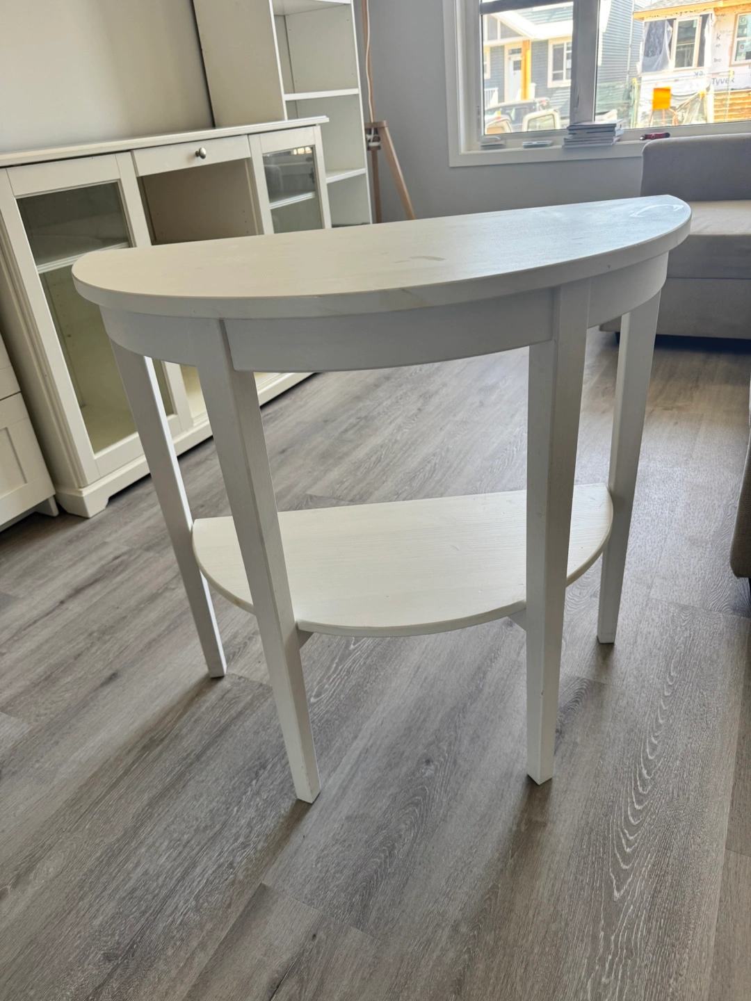 Buy & SellWhite Half-Moon Console TableWhite Half-Moon Console Table$45Adorable white half-moon console table. Features a lower shelf. Measures approximately 32 inches long. Some minor surface imperfections.WHERE TO MEETLivingston ViewView MapSELLERverifiedAJLivingston761 review0 chats·0 favorites·26 viewsSEND CHAT TO SELLERHi AJ! I’m interested in your listing.Hi AJ! I’m interested in your listing.Get the Karrot app to chatSign In to chat
