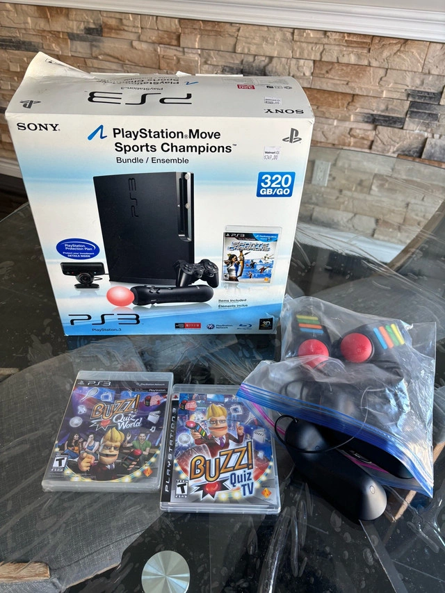 PS3 PlayStation console with Move Sports champions Bundle PlayStation console with gaming bundle 320GB - Buzz game sold Used in great condition