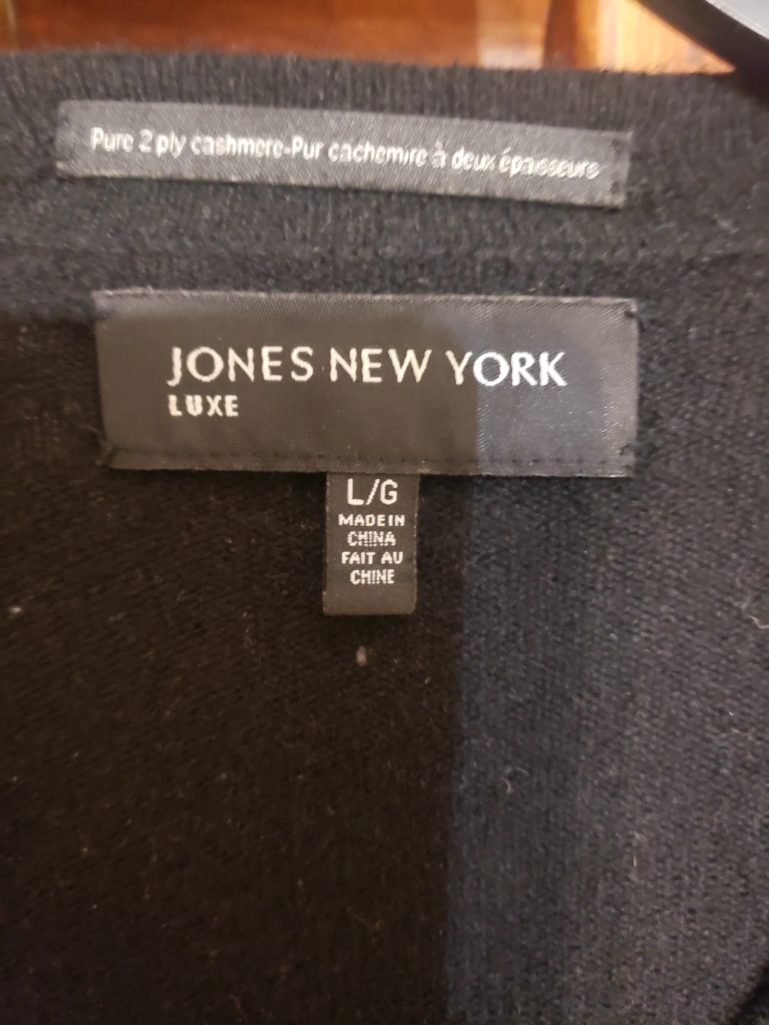 Buy & SellJones New York Luxe Black Pure 2 Ply Cashmere Cardigan L/GJones New York Luxe Black Pure 2 Ply Cashmere Cardigan L/GFreeThis is a Jones New York Luxe cardigan. It's made of pure 2-ply cashmere. Size is L/G. It's black and has two front pockets.SizelargeWHERE TO MEET252 St Clarens AveView MapSELLERverifiedCristinaBrockton Village1359 reviews2 chats·0 favorites·60 viewsSEND CHAT TO SELLERHi Cristina! I’m interested in your listing.Hi Cristina! I’m interested in your listing.Get the Karrot app to chatSign In to chat