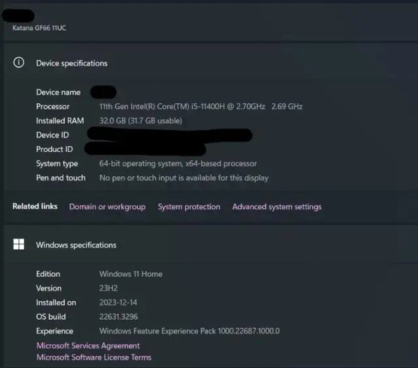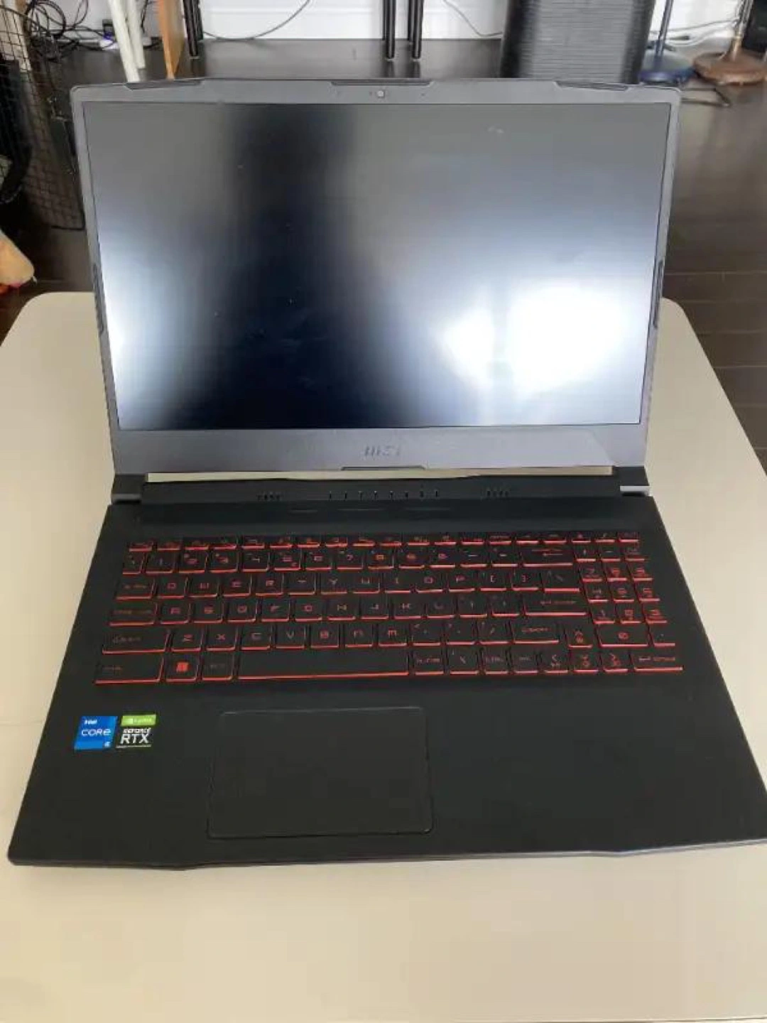 Selling my MSI Katana GF66 11UC. Reason for selling is that I'm not gaming as much as I thought I would. Still in great condition, small scuffs and scratches on the lid cover. Screen and keyboard in great shape. The housing is a bit scuffed up by the USB port (see picture). All ports are working fine.
