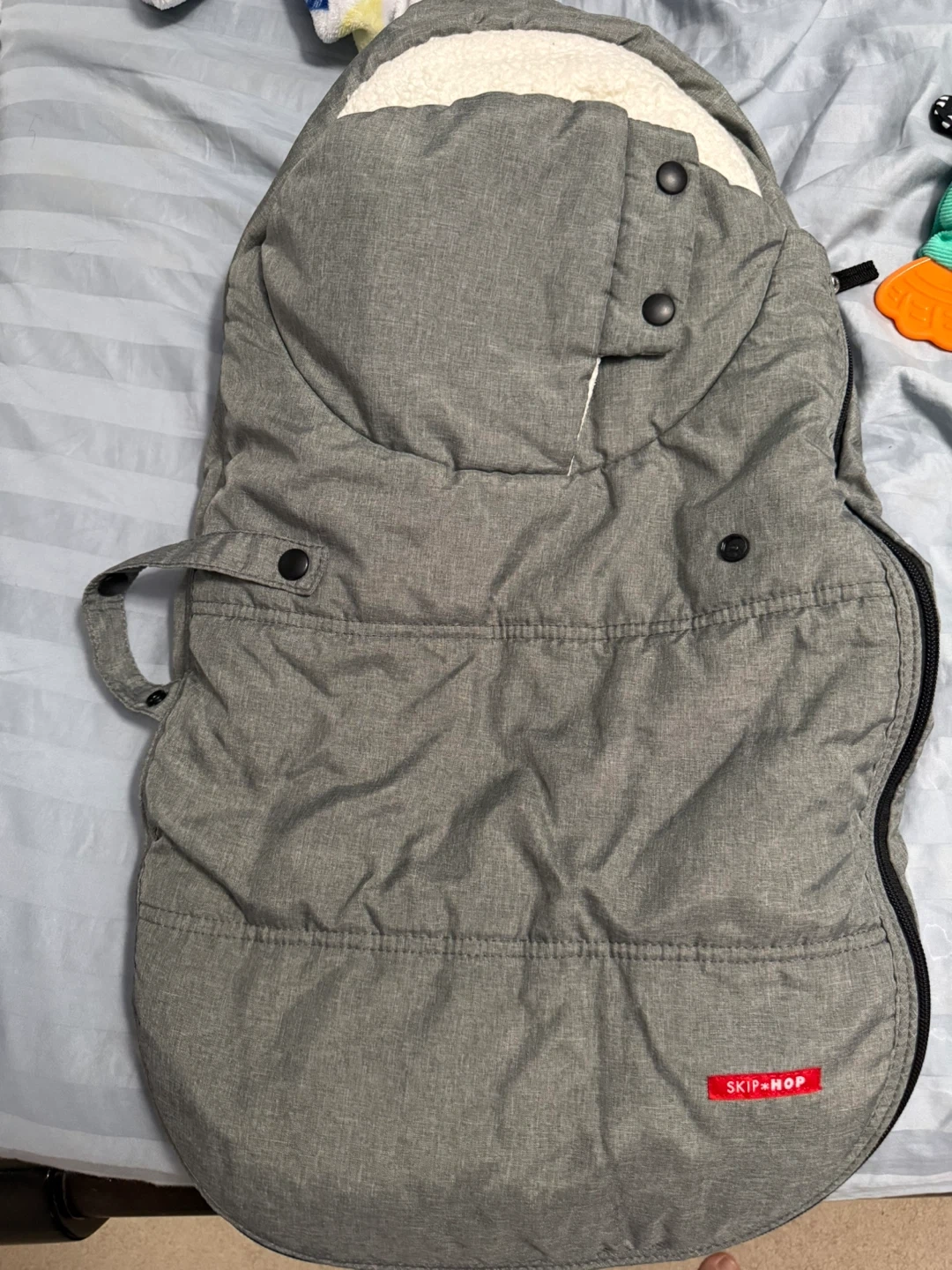 Keep your little one cozy with this Skip Hop car seat Footmuff! It's perfect for keeping baby warm on chilly days. The footmuff is in great condition and ready for a new home.
