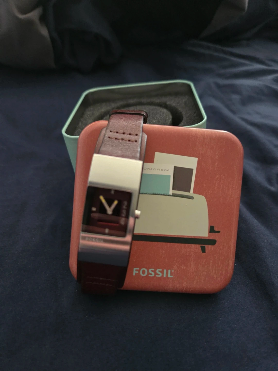Comes with metal box.