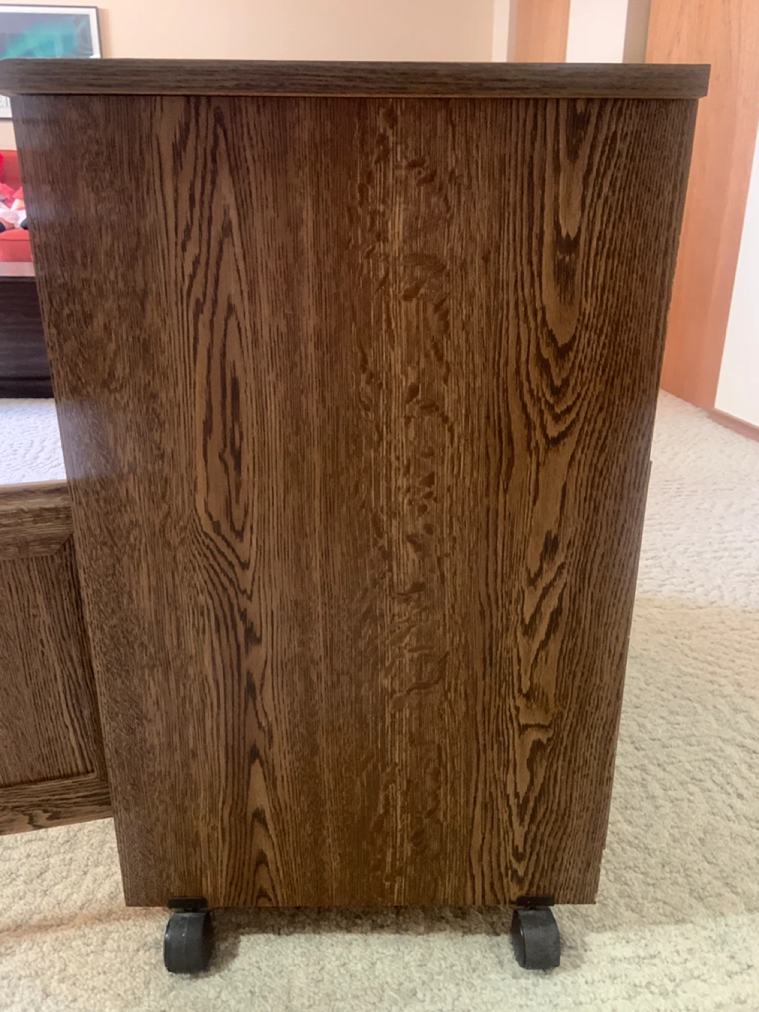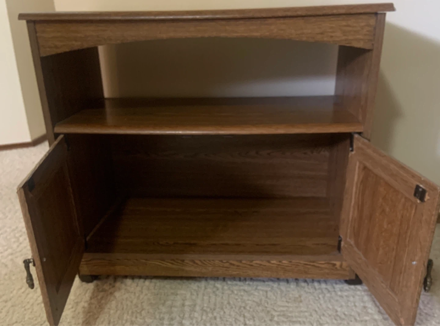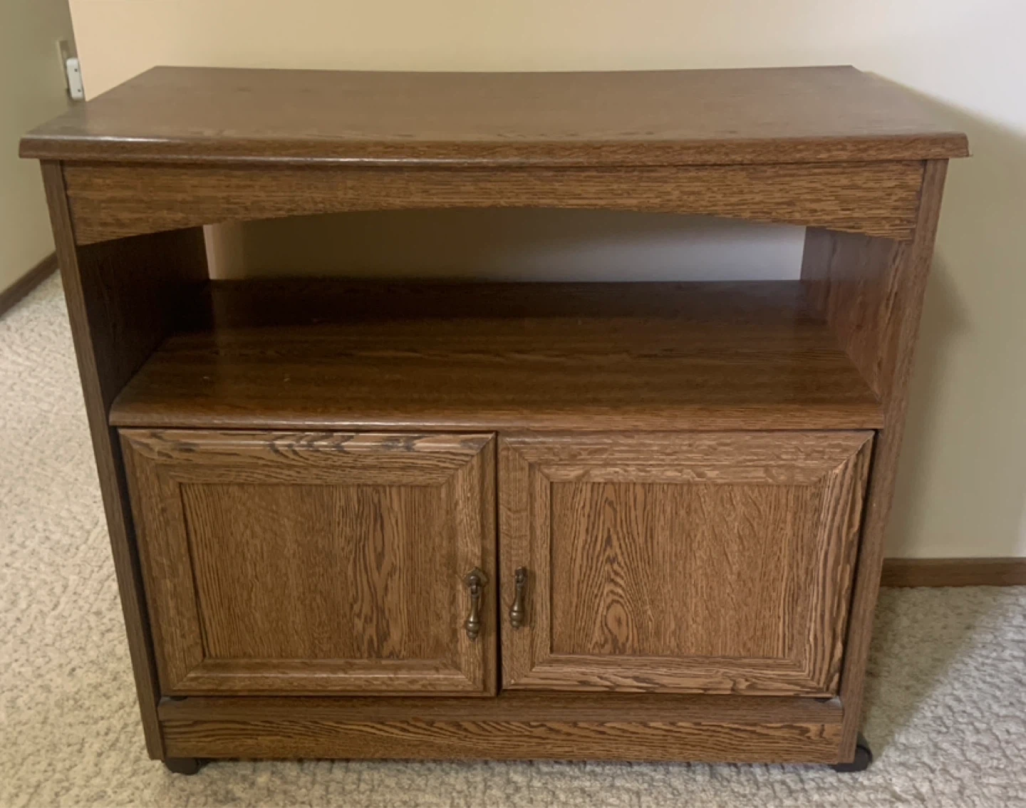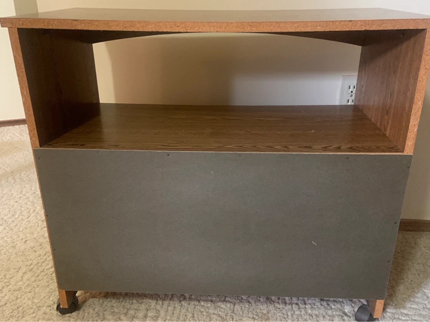 Buy & SellWooden Media Stand with CabinetWooden Media Stand with Cabinet$60Dark wood media stand with an open top shelf and a lower cabinet with two doors. It has wheels for easy moving. Wood material.ConditionGoodDimensions29 in W x 16 in D x 26 in HWHERE TO MEETCheck LocationView MapSELLERverifiedTommeSouth Park862 reviews0 chats·0 favorites·6 viewsSEND CHAT TO SELLERHi Tomme! I’m interested in your listing.Hi Tomme! I’m interested in your listing.Get the Karrot app to chatSign In to chat