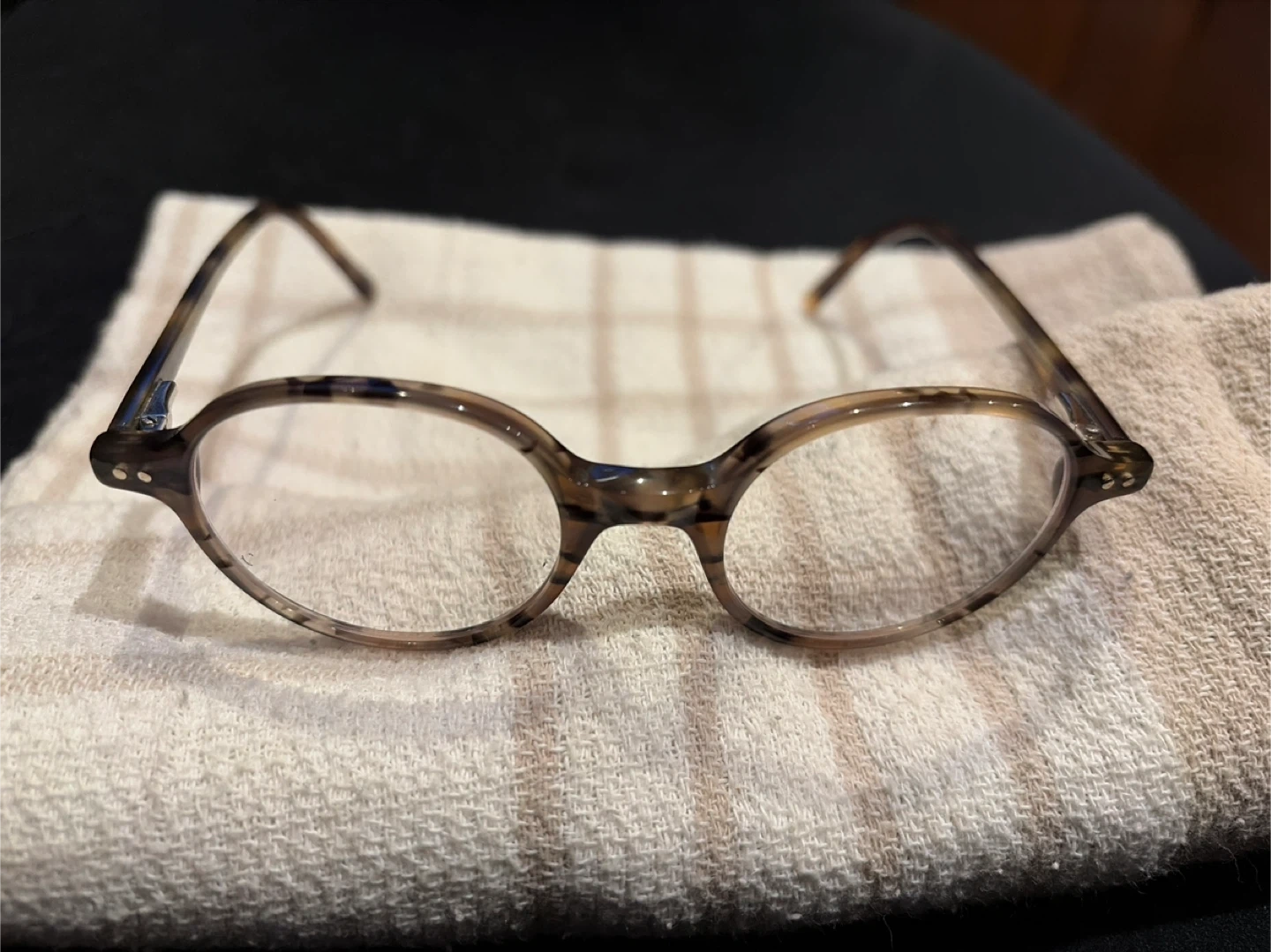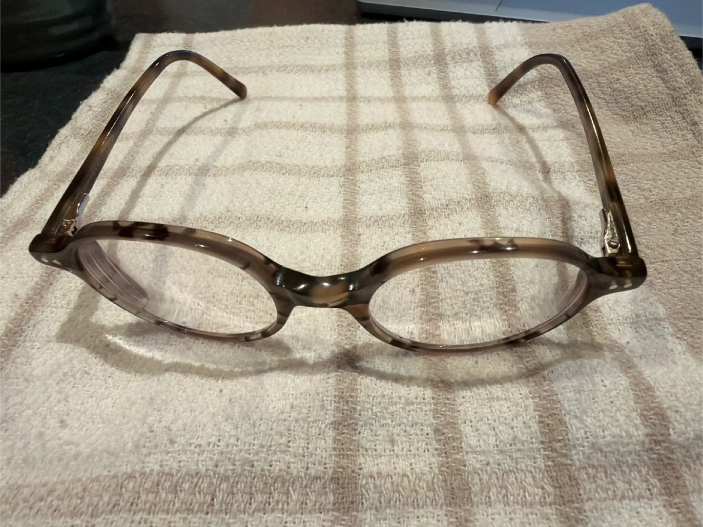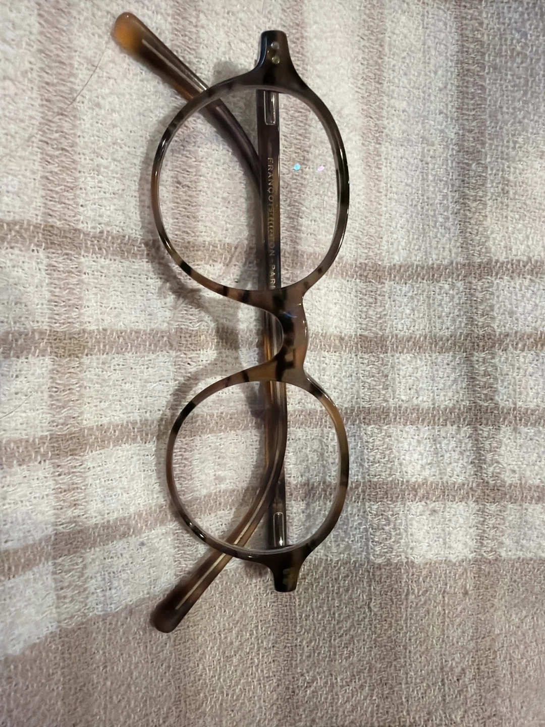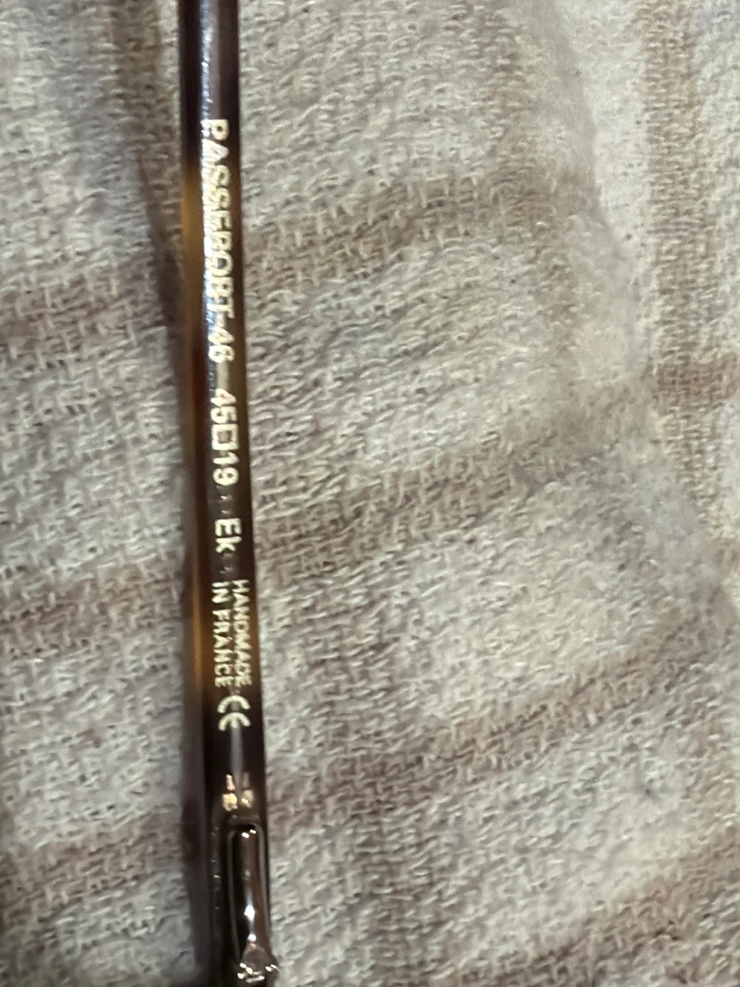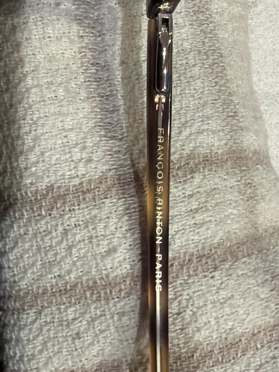 Handmade in France, François Pinton Passeport eyeglasses in a Marron clair (tortoiseshell) colour. These heritage designer frames are suitable for strong correction and progressive lenses. Frame size is 45-19, would best suit a small face. Sells new for $300+ Canadian.