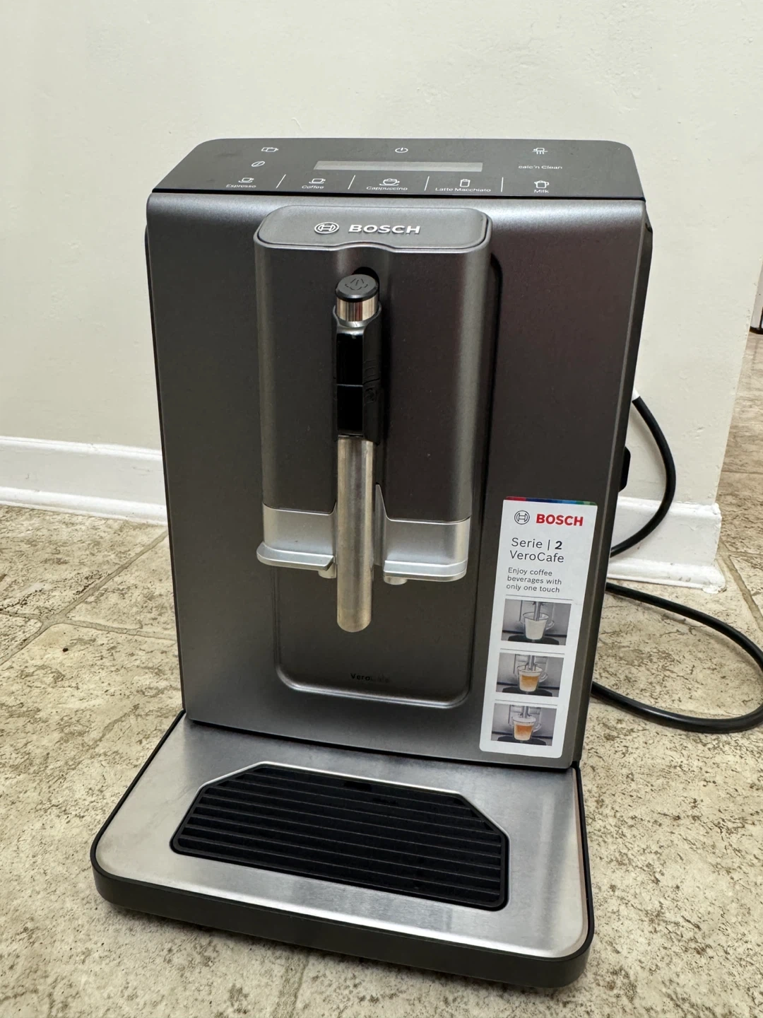 Selling a Bosch Serie | 2 VeroCafe coffee machine. It's in great condition and ready to make delicious coffee beverages with just one touch! Perfect for espresso, coffee, cappuccino, latte macchiato, and more