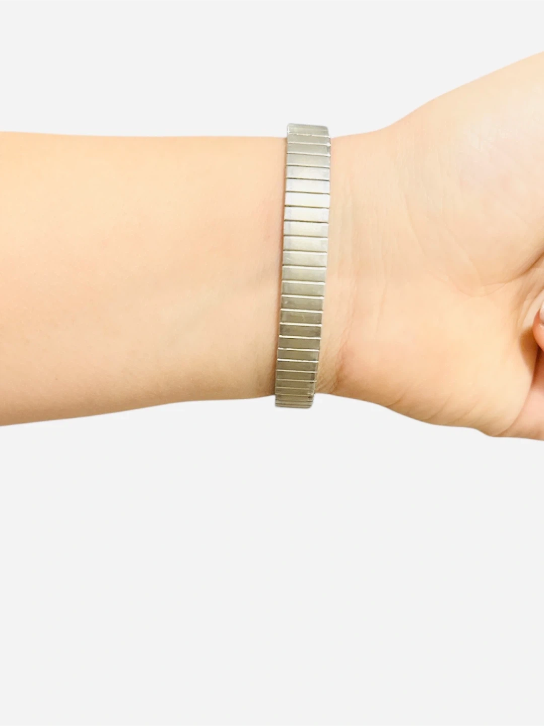• Band: Stretch-style stainless-steel band