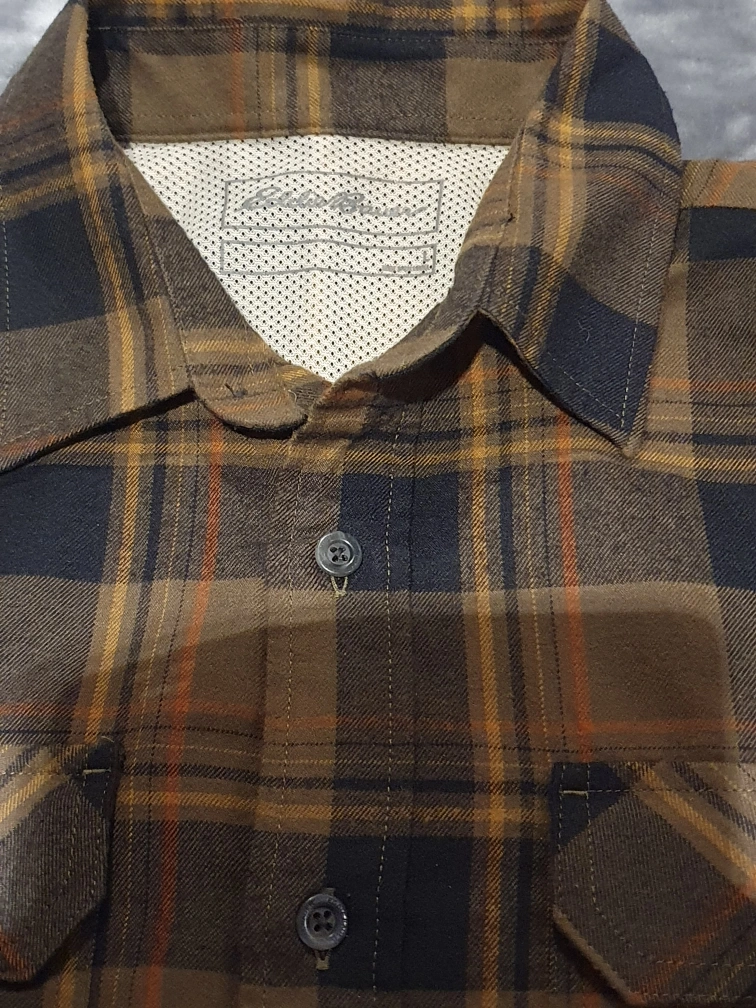 Men's Eddie Bauer Shirt - Brown and Black Plaid