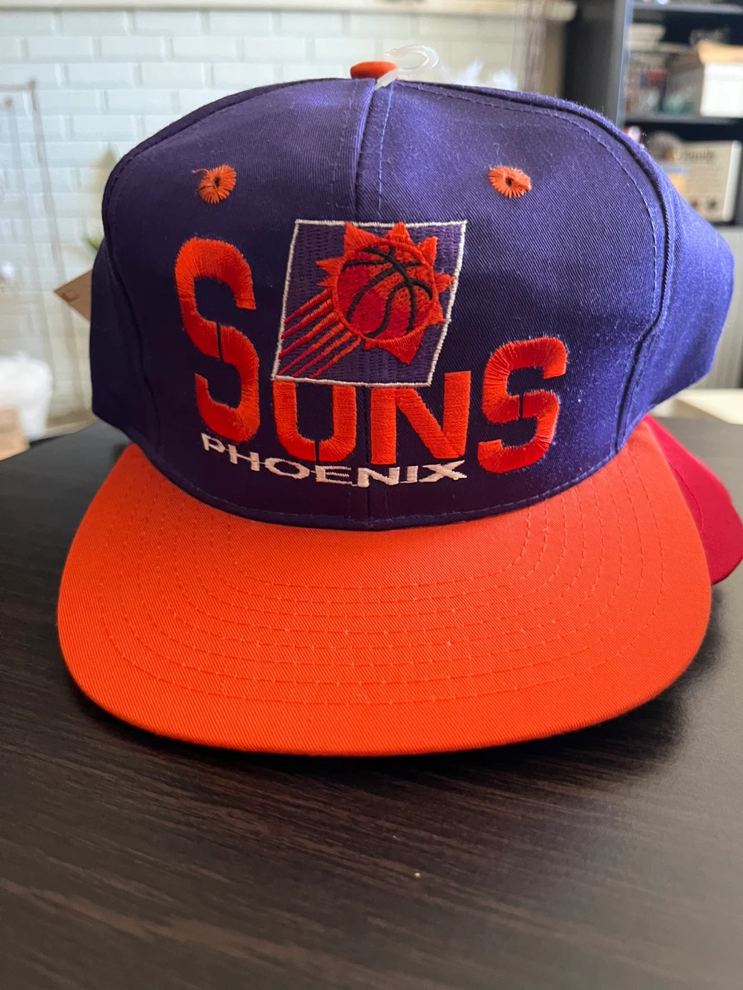 Selling an NBA Phoenix Suns snapback hat! It's purple and orange and in great condition. Perfect for showing off your team spirit!