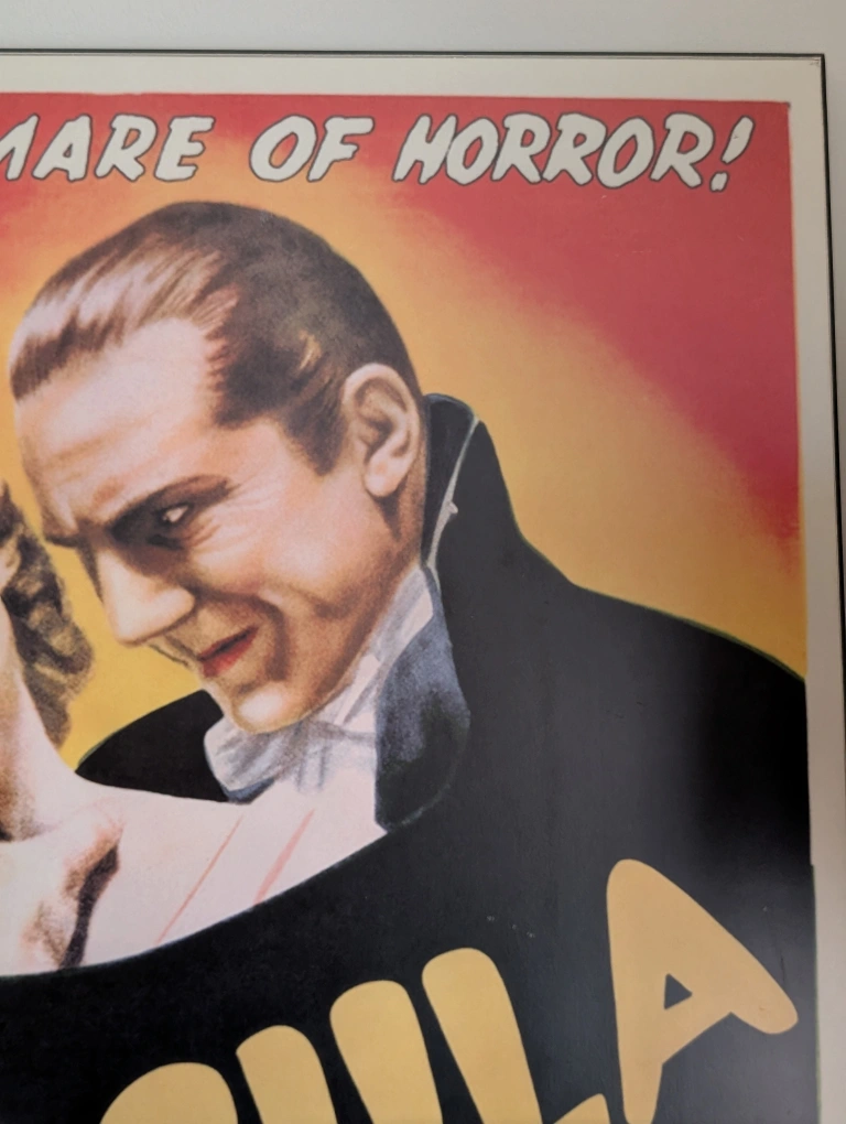 Vintage Dracula movie poster remastered and set on a hard backing (Plak-IT wood) , ready to hang. Some wear from use over time, minor imperfections only visible close up. A great piece for any classic horror fan!
