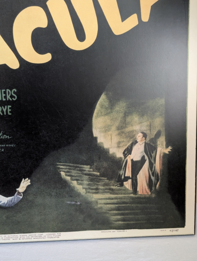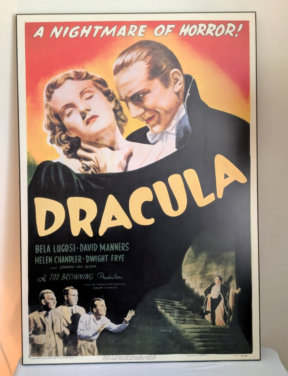 Vintage Dracula movie poster remastered and set on a hard backing (Plak-IT wood) , ready to hang. Some wear from use over time, minor imperfections only visible close up. A great piece for any classic horror fan!
