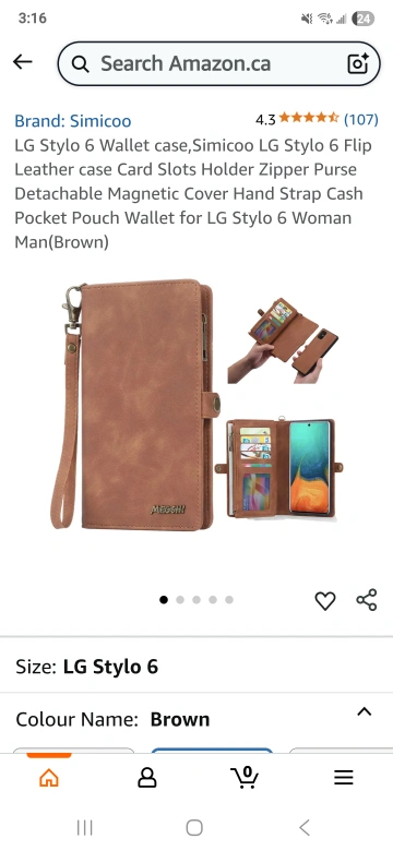 Selling a Simicoo wallet case in brown, designed for the LG Stylo 6. It features card slots, a zipper purse, and a detachable magnetic cover. Perfect for keeping your essentials organized!