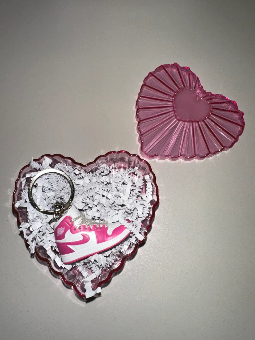 Pink Nike Keychain in a Heart shaped acrylic holder! 💝