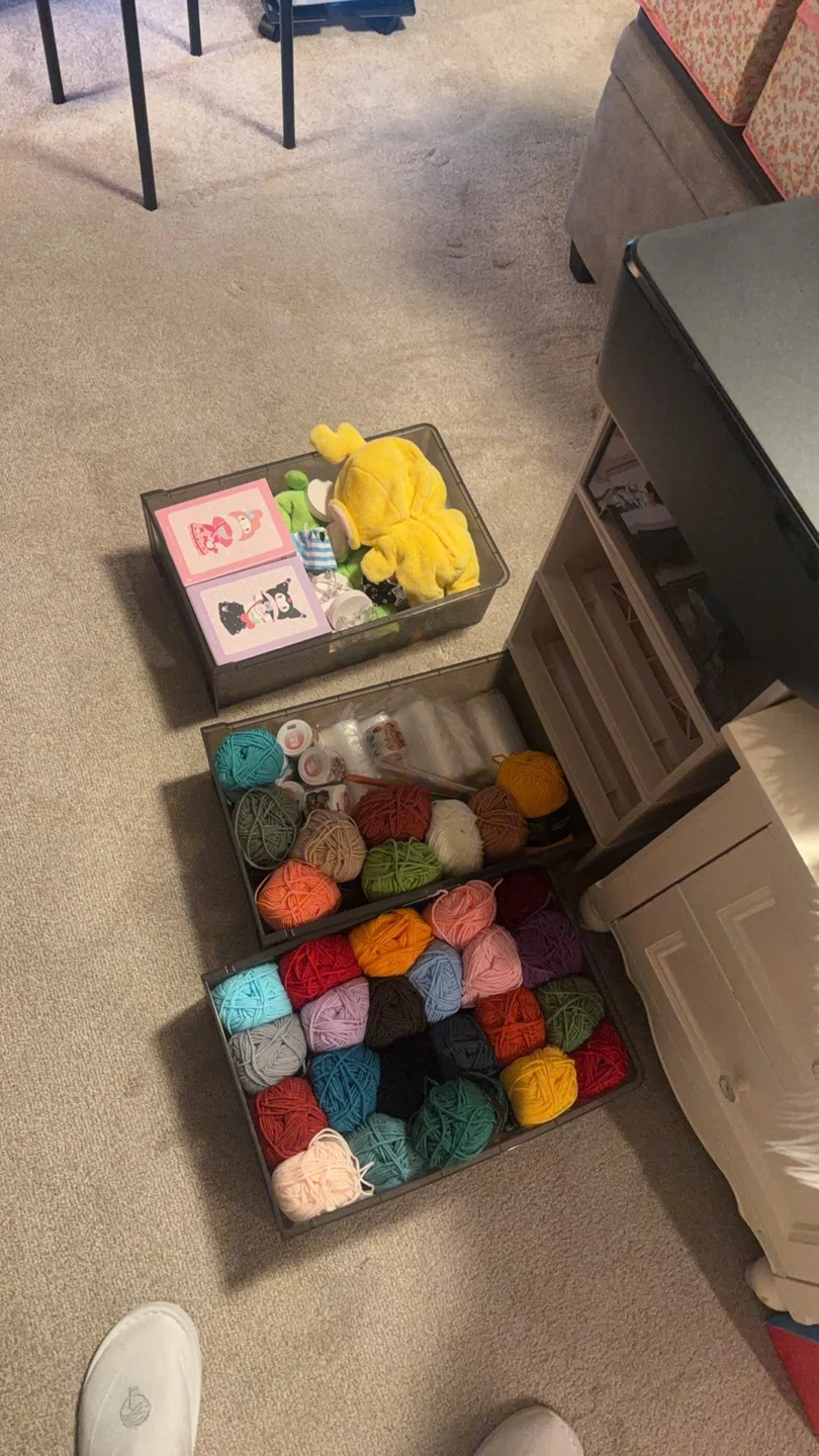 Collection of colourful yarn balls in various shades, perfect for knitting or crochet projects. Includes additional craft supplies like tape and small containers. This set offers a wide range of colours to inspire your next handmade creation!