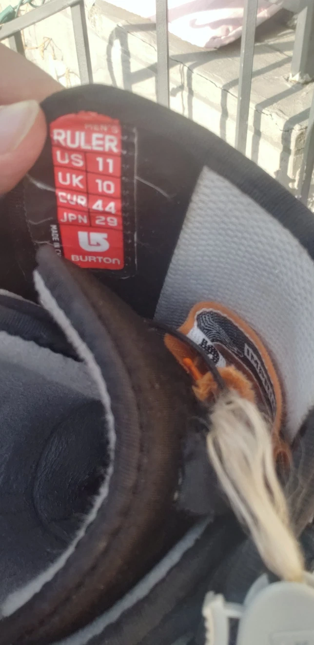 Used Burton Ruler snowboard boots. Men's size US 11. Black. Good condition.