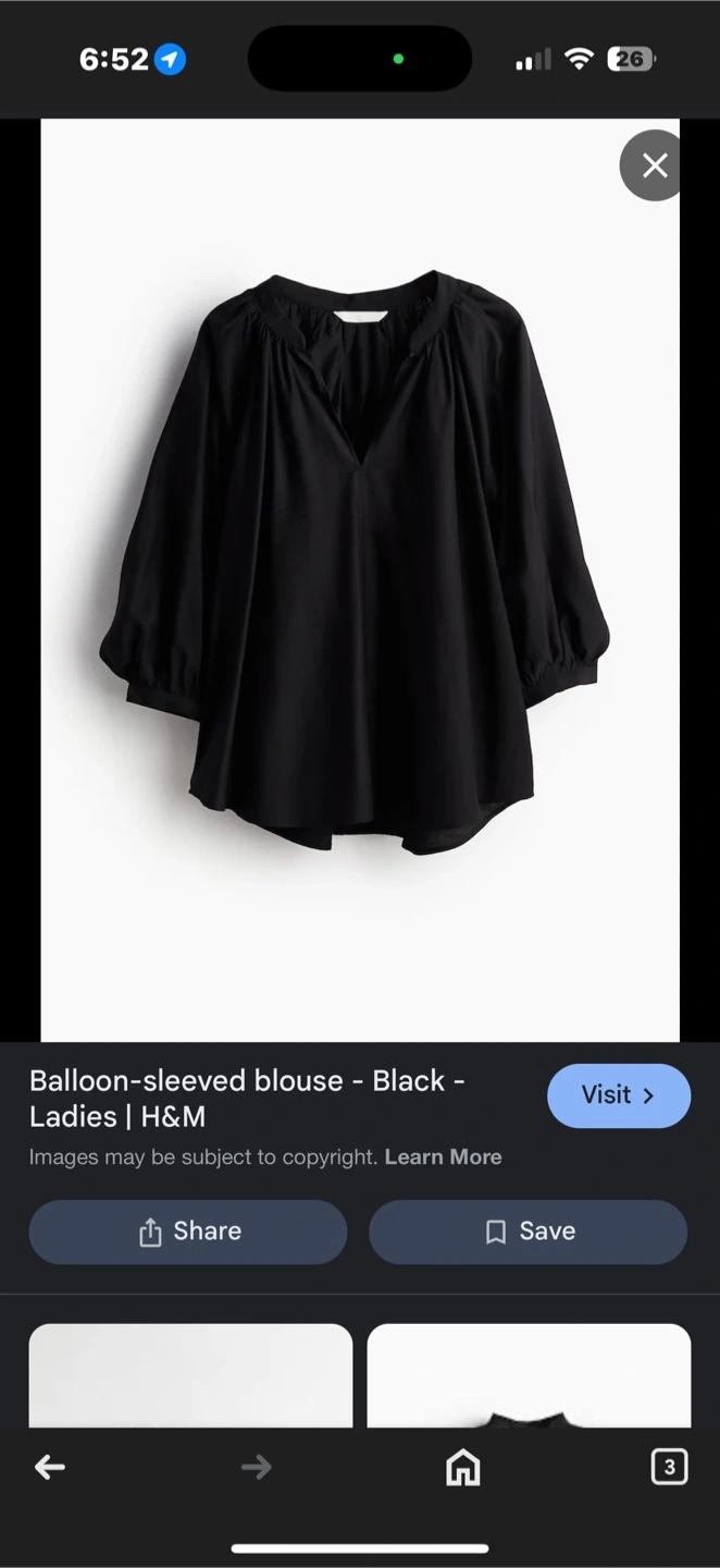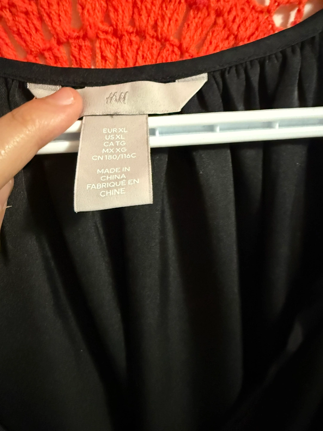 50Black balloon-sleeved blouse. Size XL. Slightly gathered sleeves. V-neck.