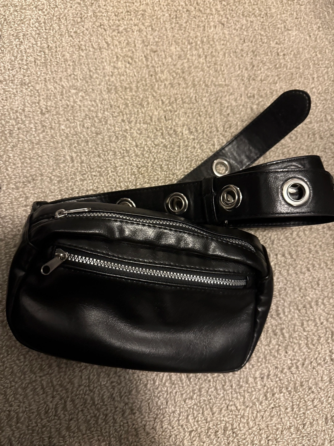 Selling a stylish black belt bag! It's in great condition and ready for a new home. Perfect for keeping your essentials close and adding a cool touch to any outfit