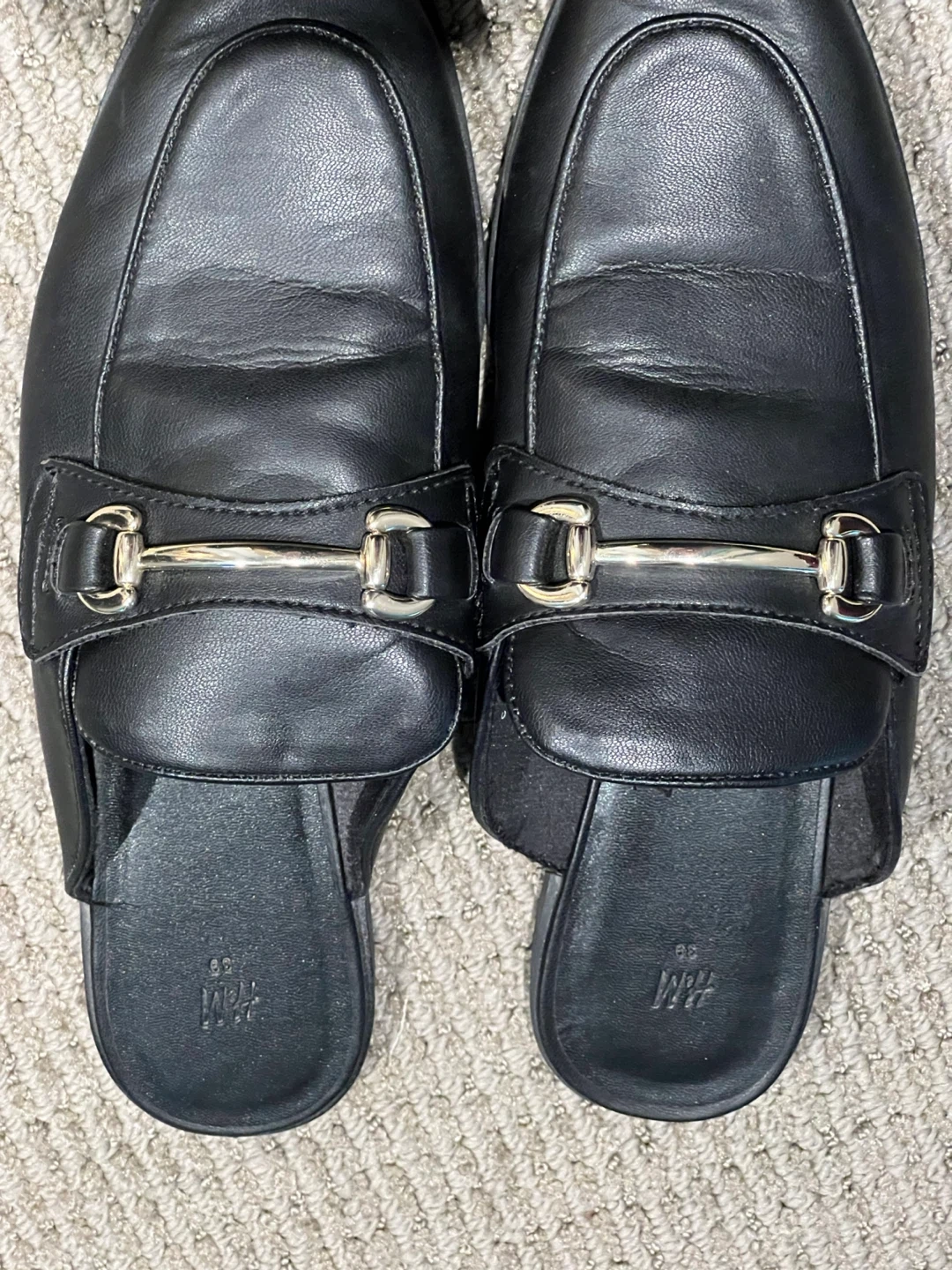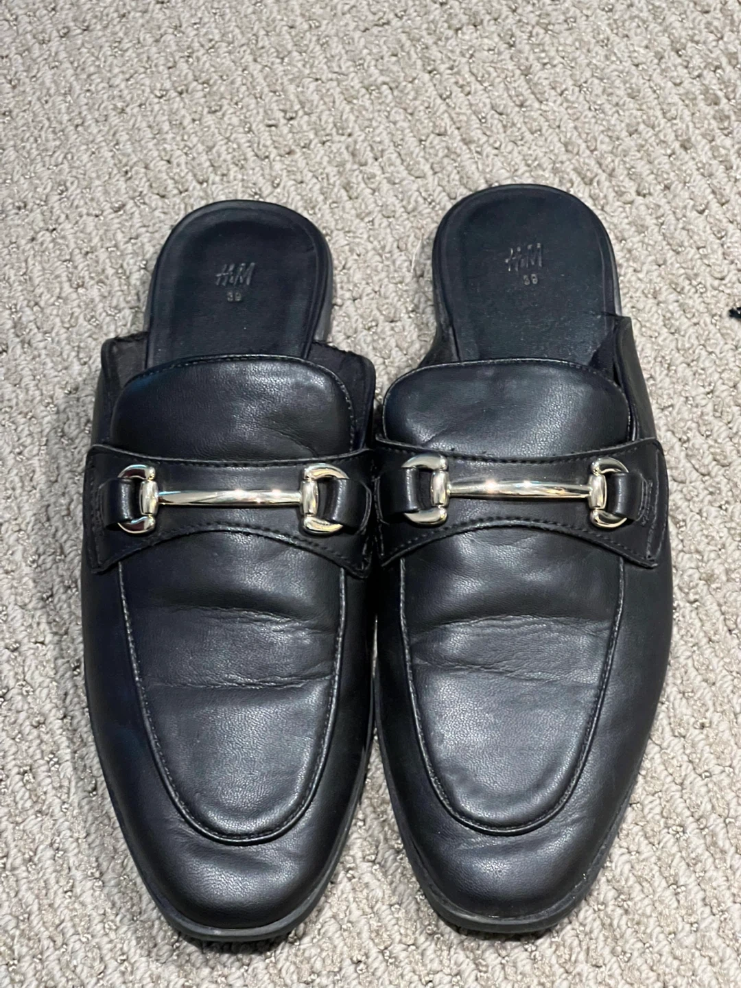 92Selling a pair of H&M black leather mules. Not often worn so they are in good shape and a size 39.
