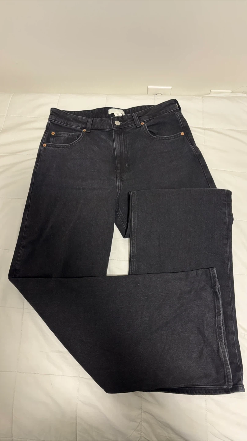 15Bought it online last week but not my size. Washed once, never worn outside. Product details: H&m- wide leg jeans Size- US8 Color- black Original price- $44.99