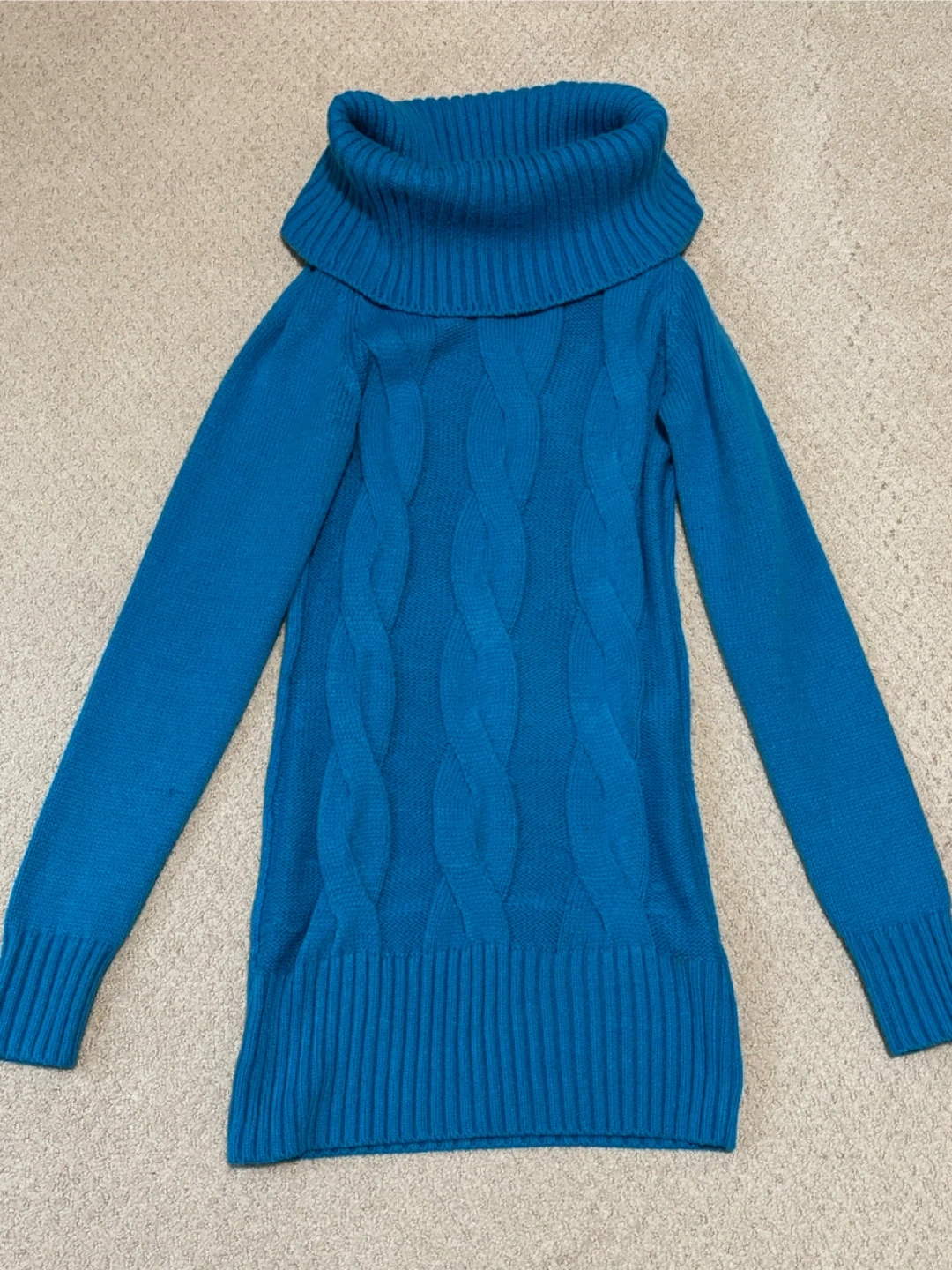 33Cozy H&M sweater dress in a vibrant blue! It's a size 34 and made from 100% acrylic, so it's nice and soft. Perfect for staying warm and stylish during the cooler months