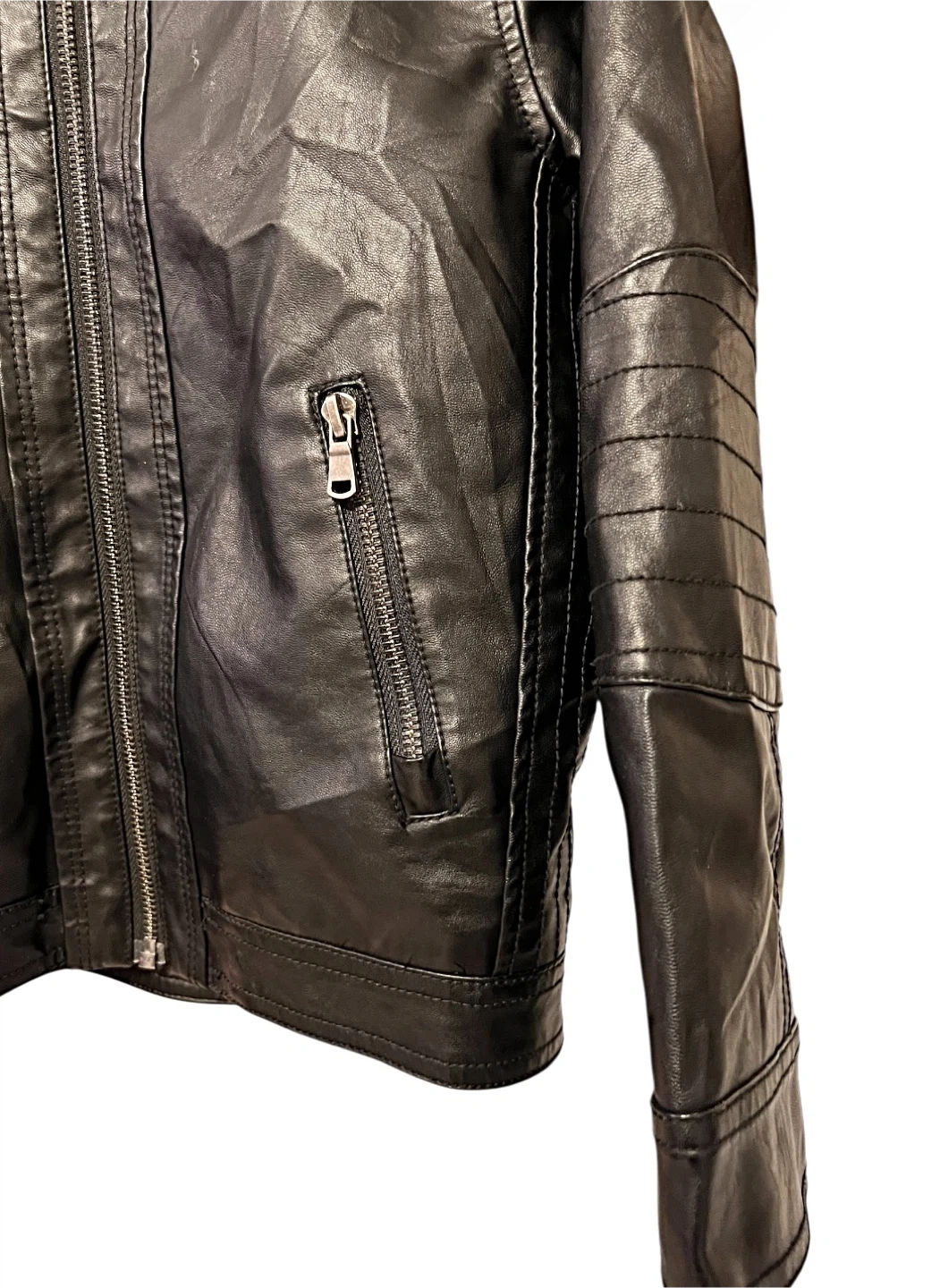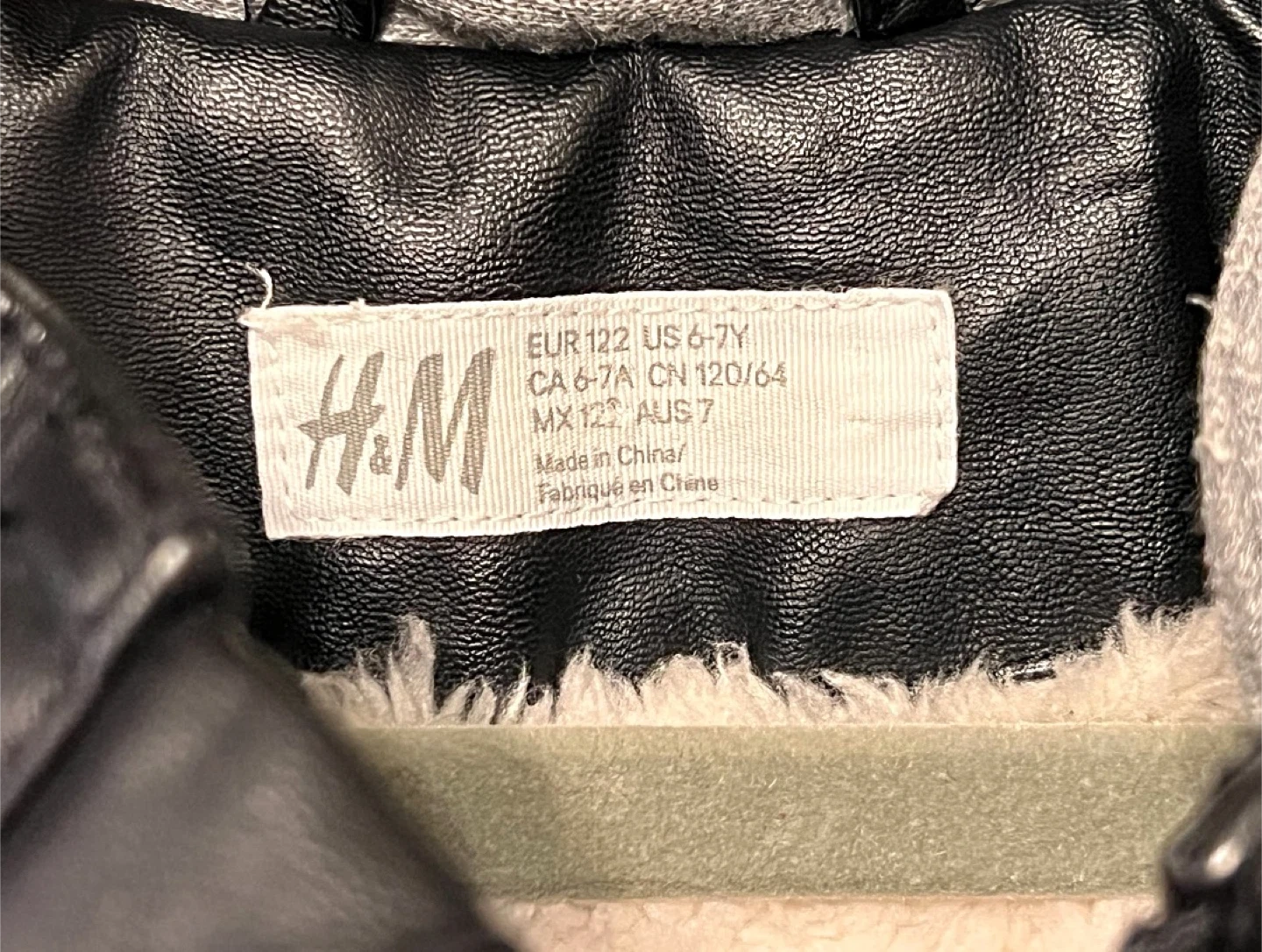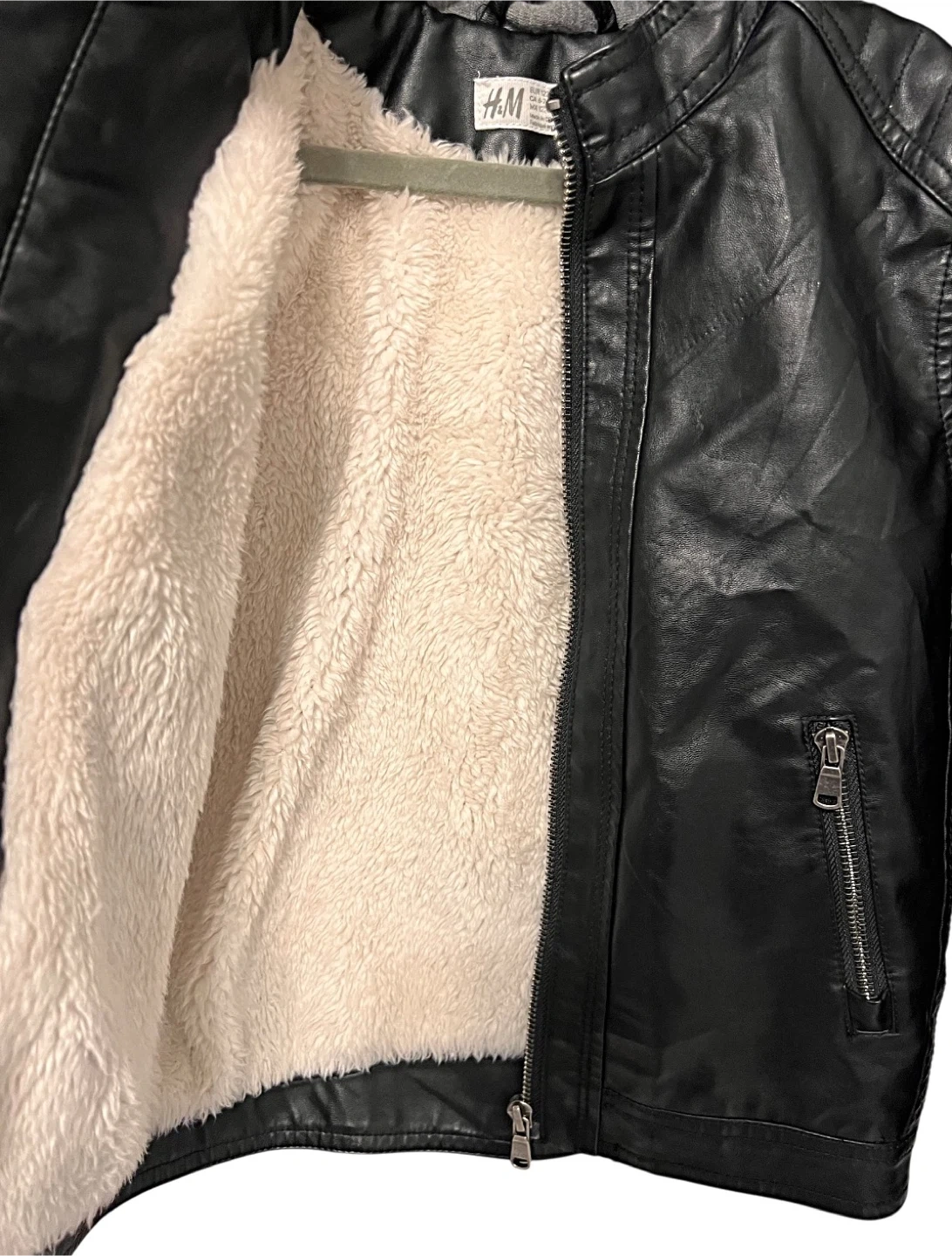 Stylish black faux leather jacket from H&M, perfect for fall and winter! Fully lined with super-soft cream sherpa fleece for extra warmth and comfort. Cool moto-style design with zip-up front and two functional zip pockets. ✅ Size: US 6–7Y / EUR 122 ✅ Condition: Gently used, excellent condition – no flaws ✅ Colour: Black exterior with cozy beige sherpa lining ✅ From a pet- and smoke-free home 💰 Asking Price: $25 📍 Pickup near Islington & Finch (Toronto) – Delivery available within a reasonable distance