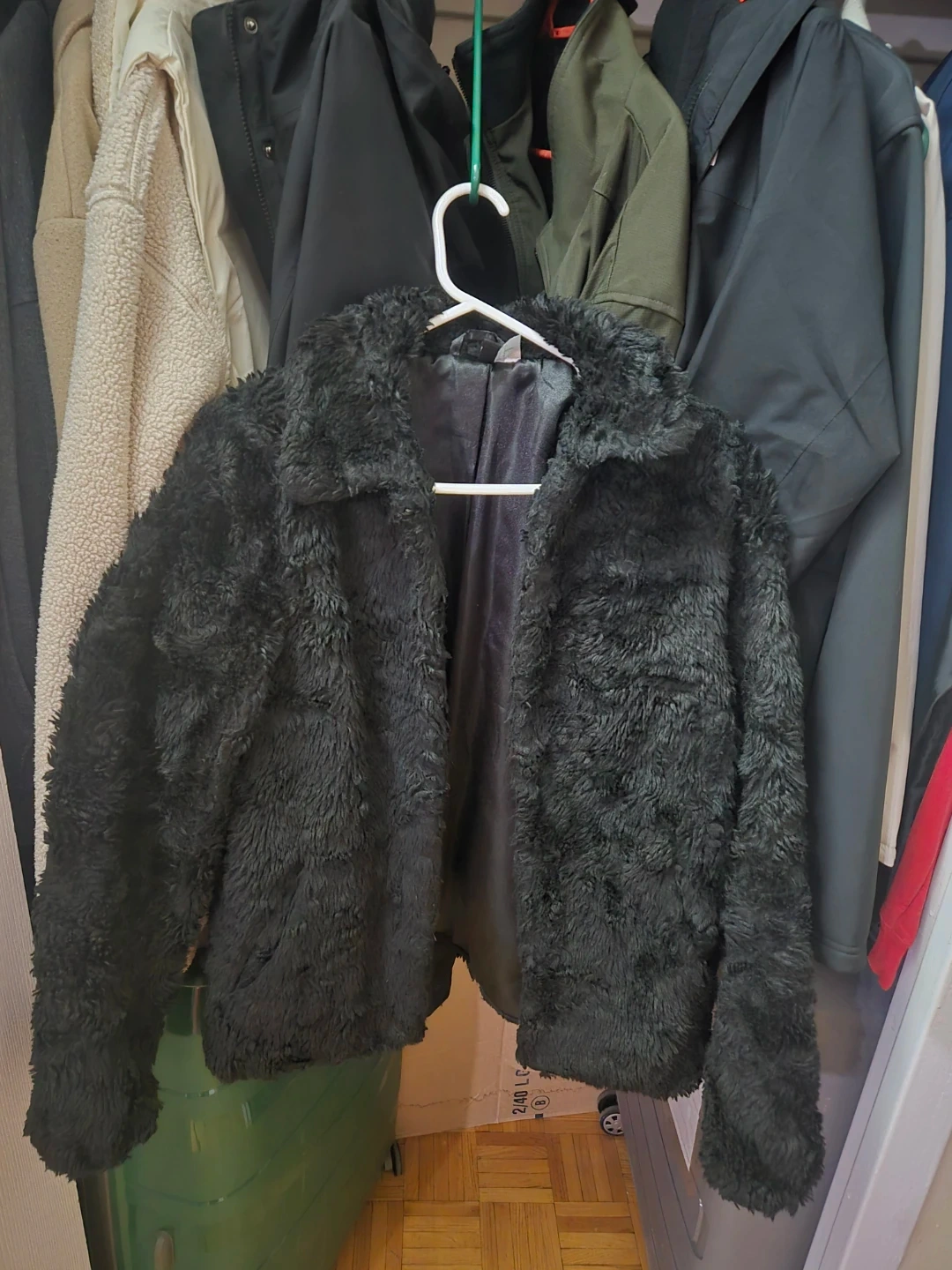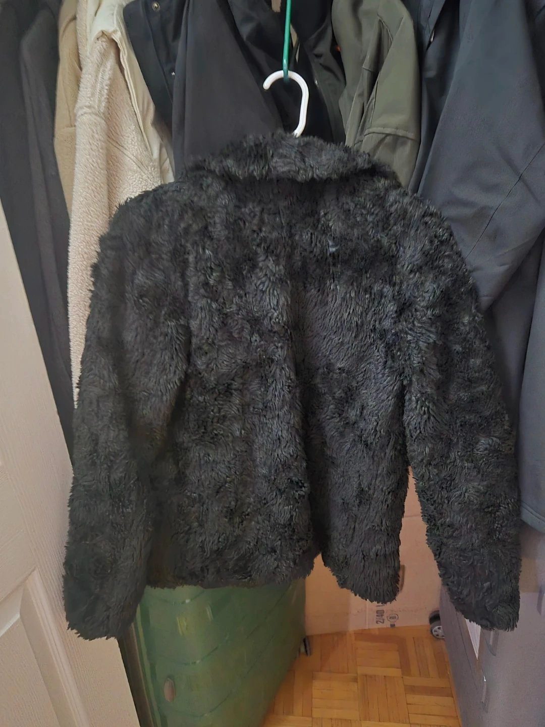 84Selling a cozy H&M Divided faux fur jacket in black! It's a size 6 and perfect for adding a bit of warmth and style to your wardrobe. The jacket is in great condition and ready for a new home