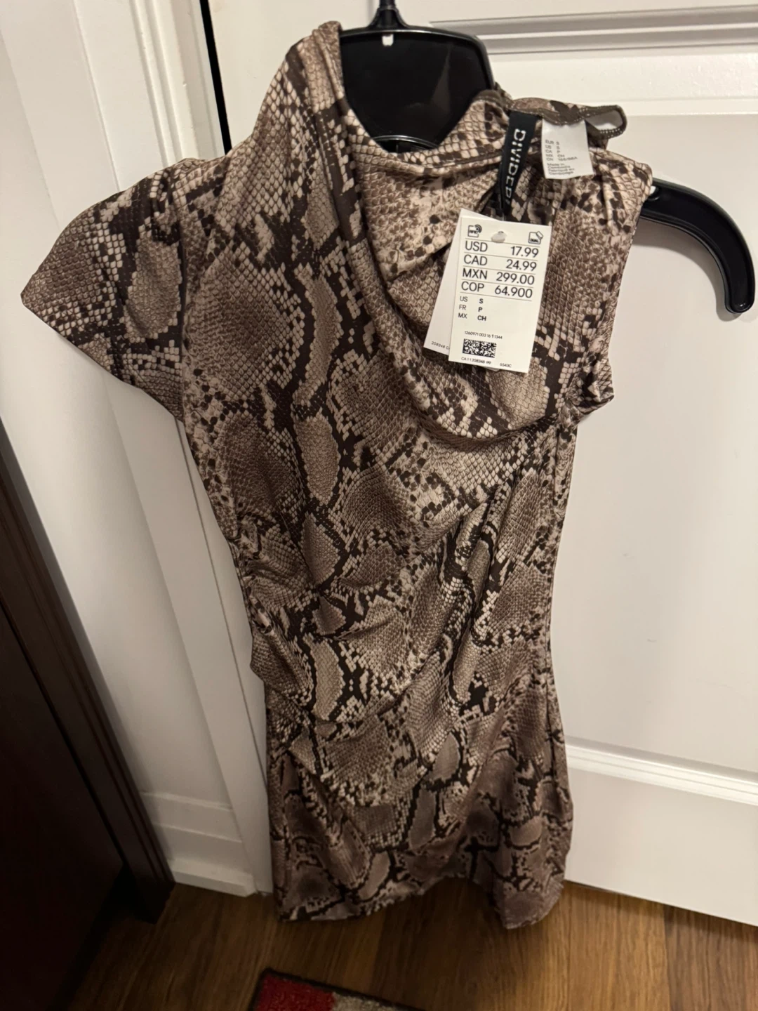 10Selling a H&M Divided dress with a snakeskin print. It's a size small and in great condition! Brand new! Originally bought for $24.99 CAD