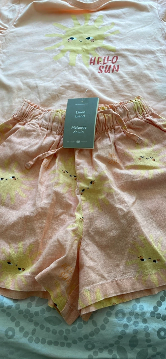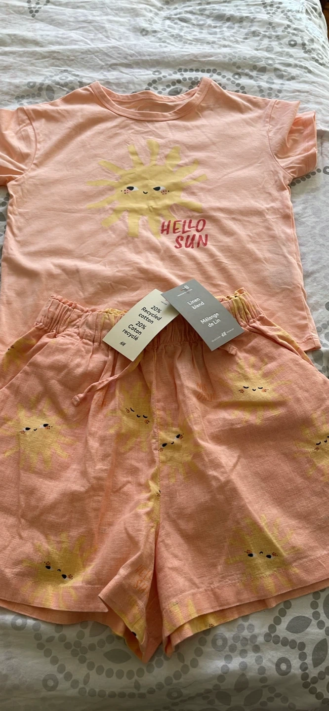 GIRL’s TWO PIECE OUTFIT. SKIRT AND SHorts. linen blend. Size 9-10 yr. From H/M. NEW Pick up in Scarborough. Moving sale. Midland and Eglinton