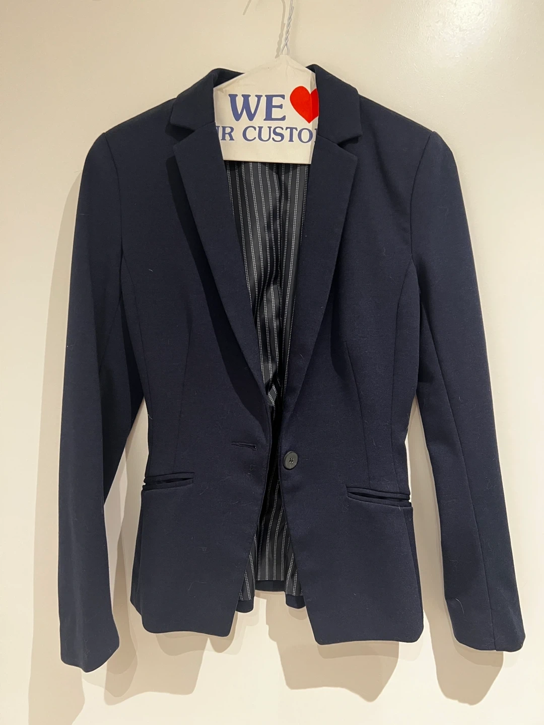 A stylish navy blazer from H&M, perfect for adding a touch of sophistication to any outfit! It's in great condition and comes in a size US 2.
