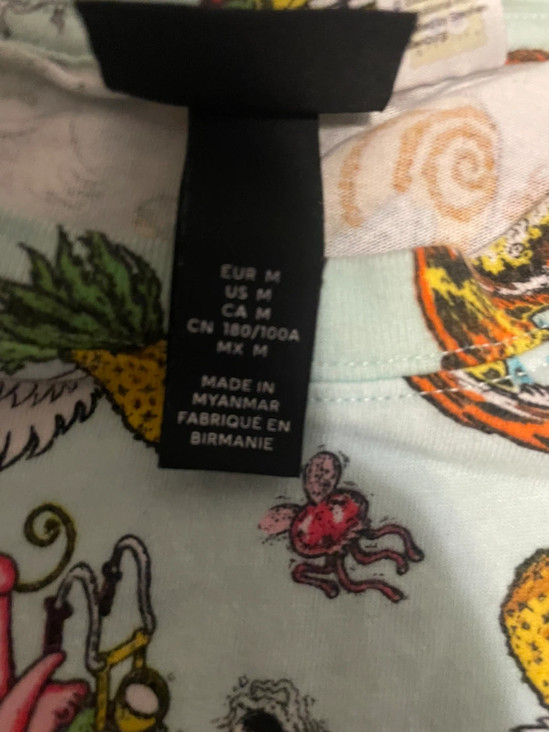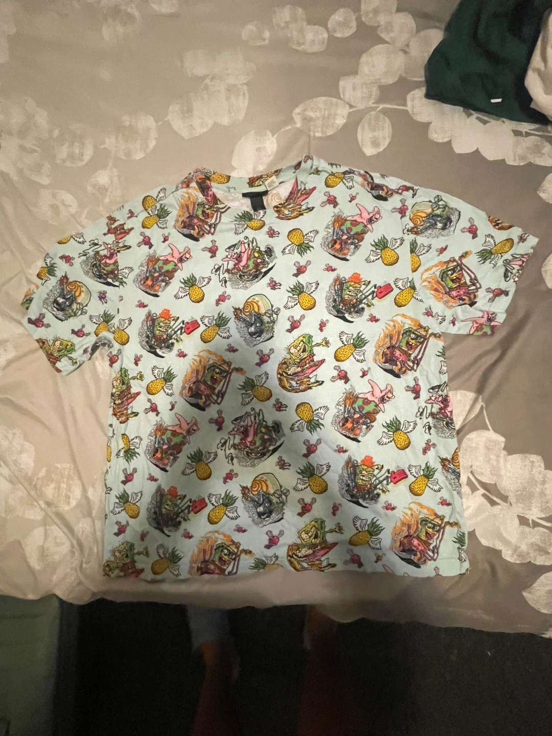 68Selling a H&M Relaxed Fit T-shirt featuring a Spongebob, Patrick, and Gary design! The shirt is a size M and in great condition. It has a fun and unique pattern with Spongebob characters and pineapples all over. Perfect for any Spongebob fan!