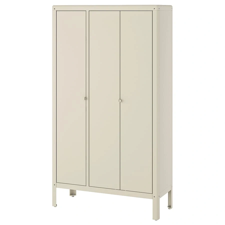 Cream coloured metal storage cabinet with double doors