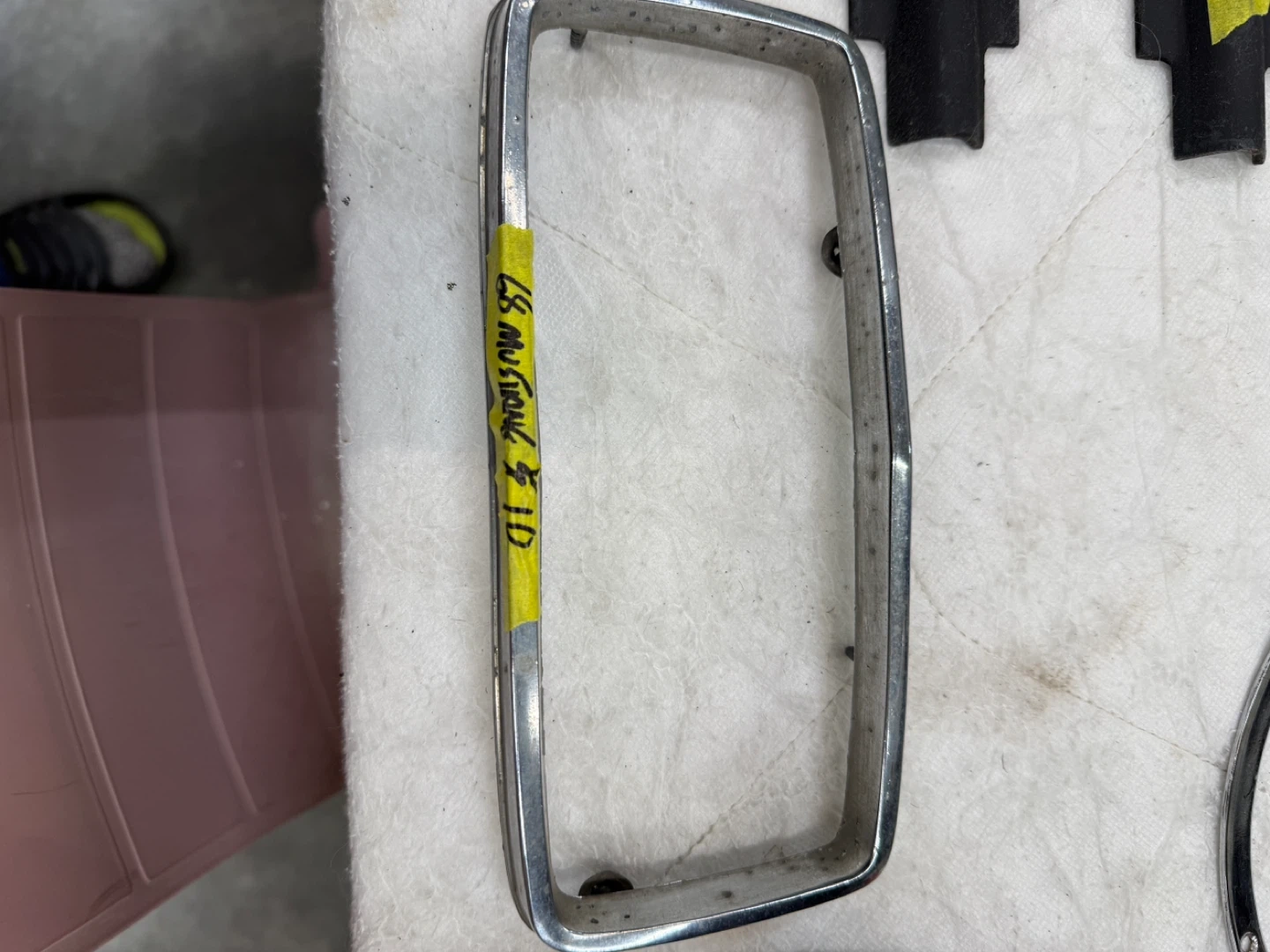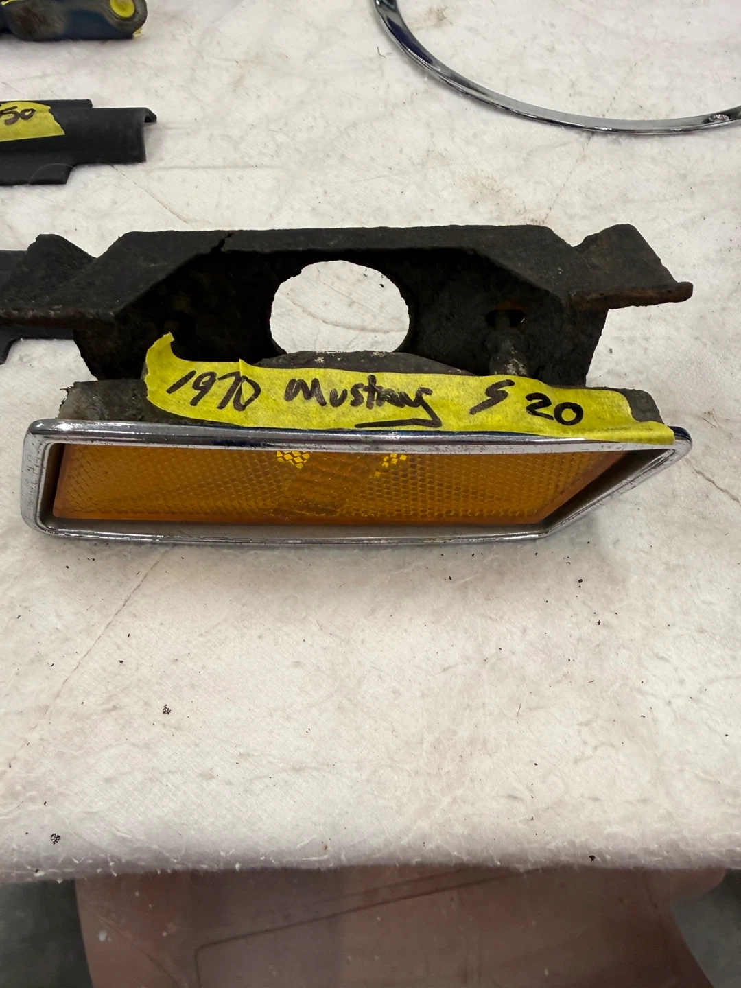 This lot includes parts for 1968 and 1970 Ford Mustangs. It has headlight bezels, a side marker light assembly, and a chrome running horse emblem. These are original vintage parts for your classic Mustang project!Prices are on parts.54th ave 248th st Aldergrove