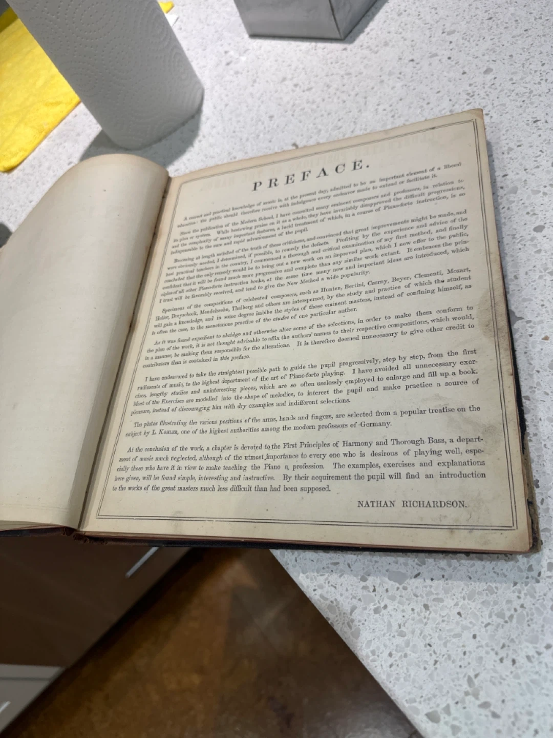 Selling a copy of Richardson's New Method for the Piano-Forte, copyrighted 1859