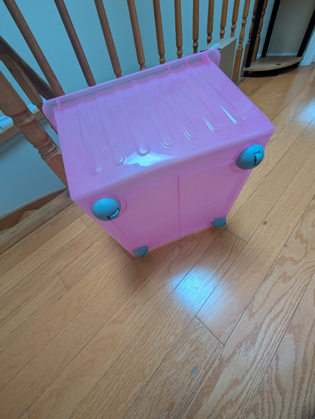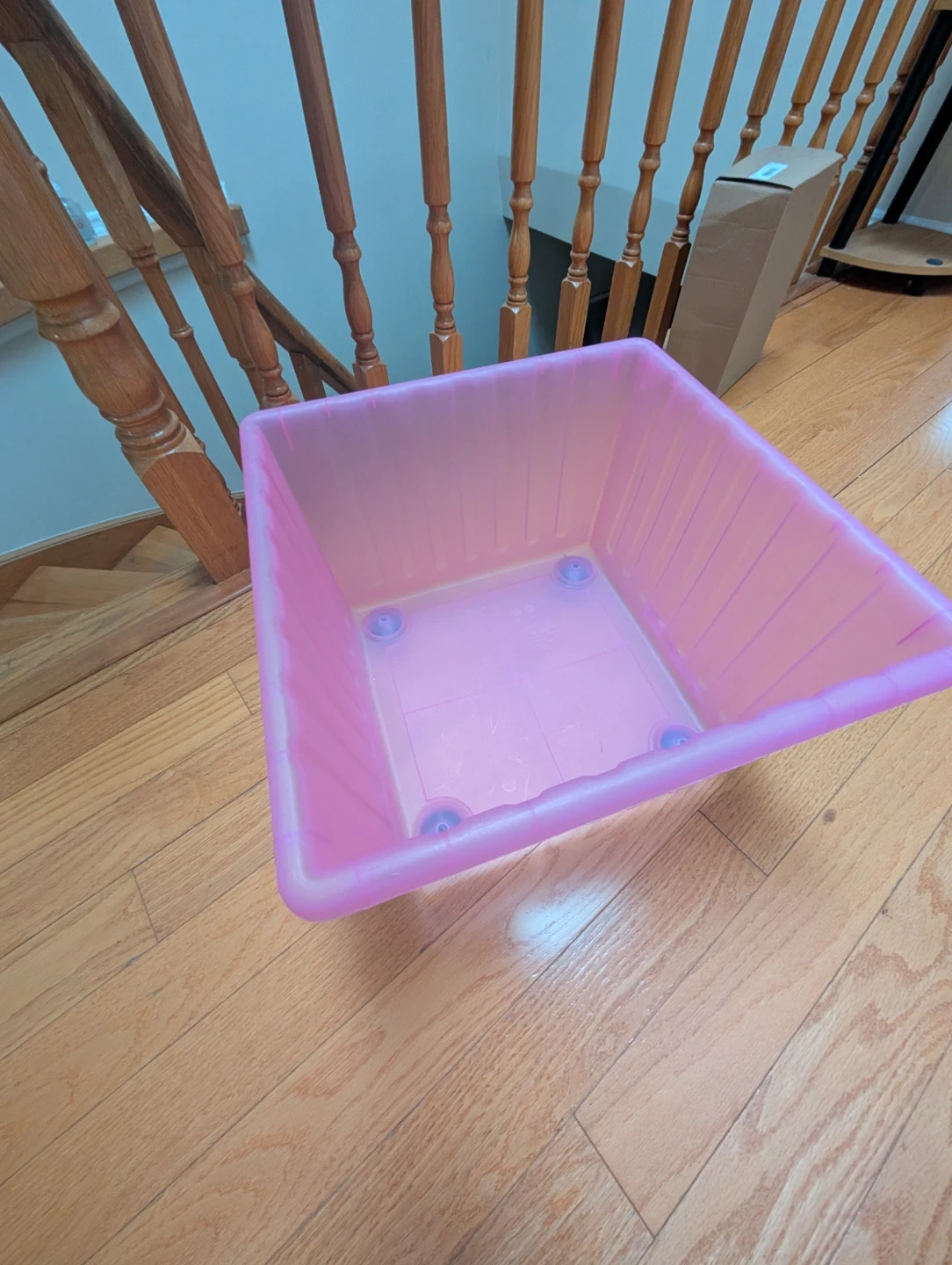 This is an IKEA VESSLA crate in pink colour. This storage crate has casters and is useful for organizing toys or other household items. 34x34x26 cm