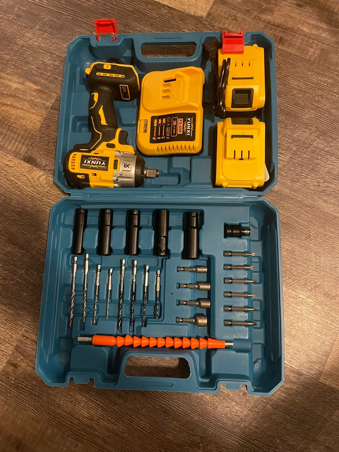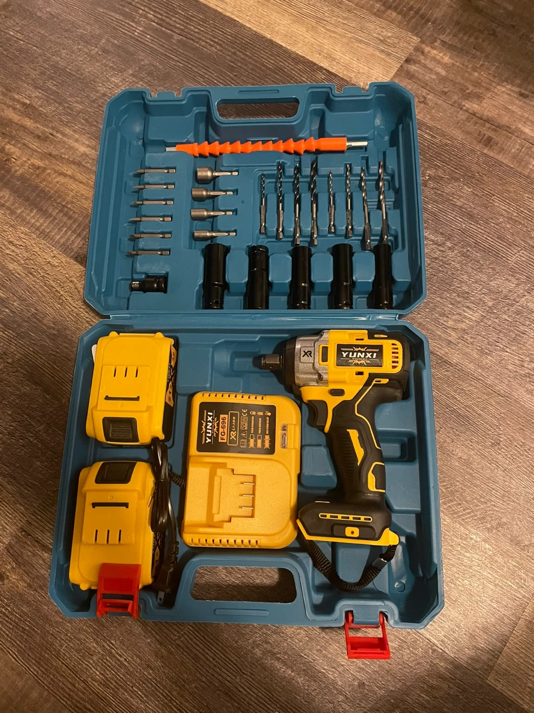 Selling a Yunxi cordless impact wrench drill set. It comes with the drill, charger, two batteries, and a variety of drill bits all in a convenient carrying case. Great for any DIY projects around the house!
