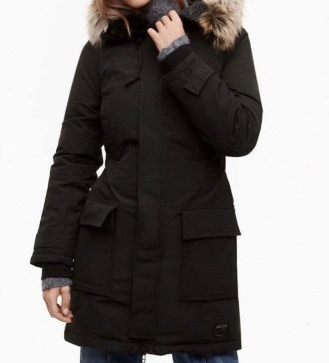 Stay warm, stylish, and vegan/eco-friendly this winter with the Golden by TNA Bancroft Vegan Parka - perfect for braving cold weather without sacrificing comfort or aesthetics. This jacket is barely worn and in very good condition. I’m selling it because it’s too small for me.