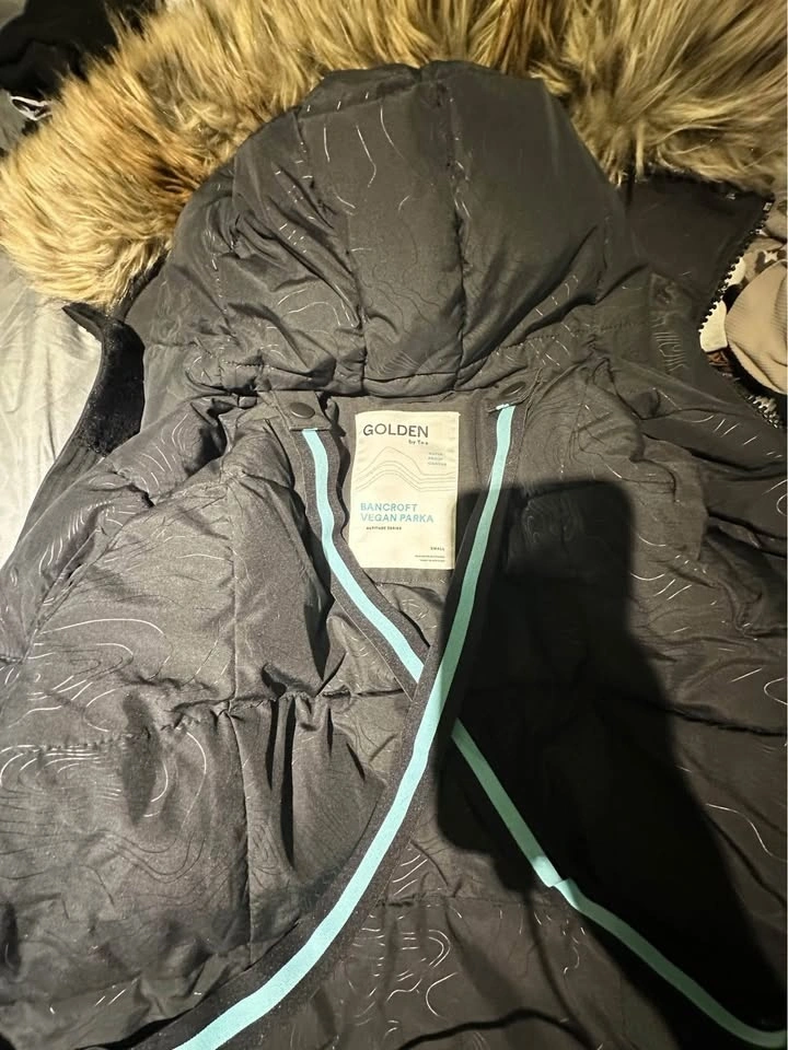 Stay warm, stylish, and vegan/eco-friendly this winter with the Golden by TNA Bancroft Vegan Parka - perfect for braving cold weather without sacrificing comfort or aesthetics. This jacket is barely worn and in very good condition. I’m selling it because it’s too small for me.