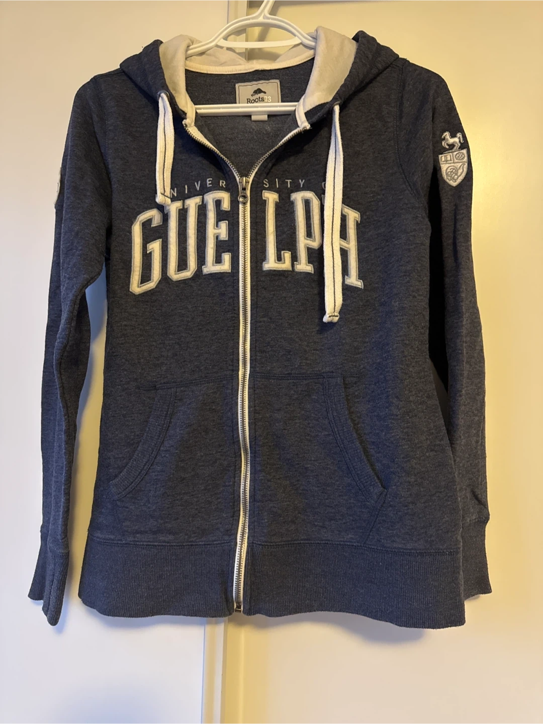 Roots zip-up hoodie featuring the University of Guelph logo. It's in great condition and perfect for showing off your Gryphon pride!