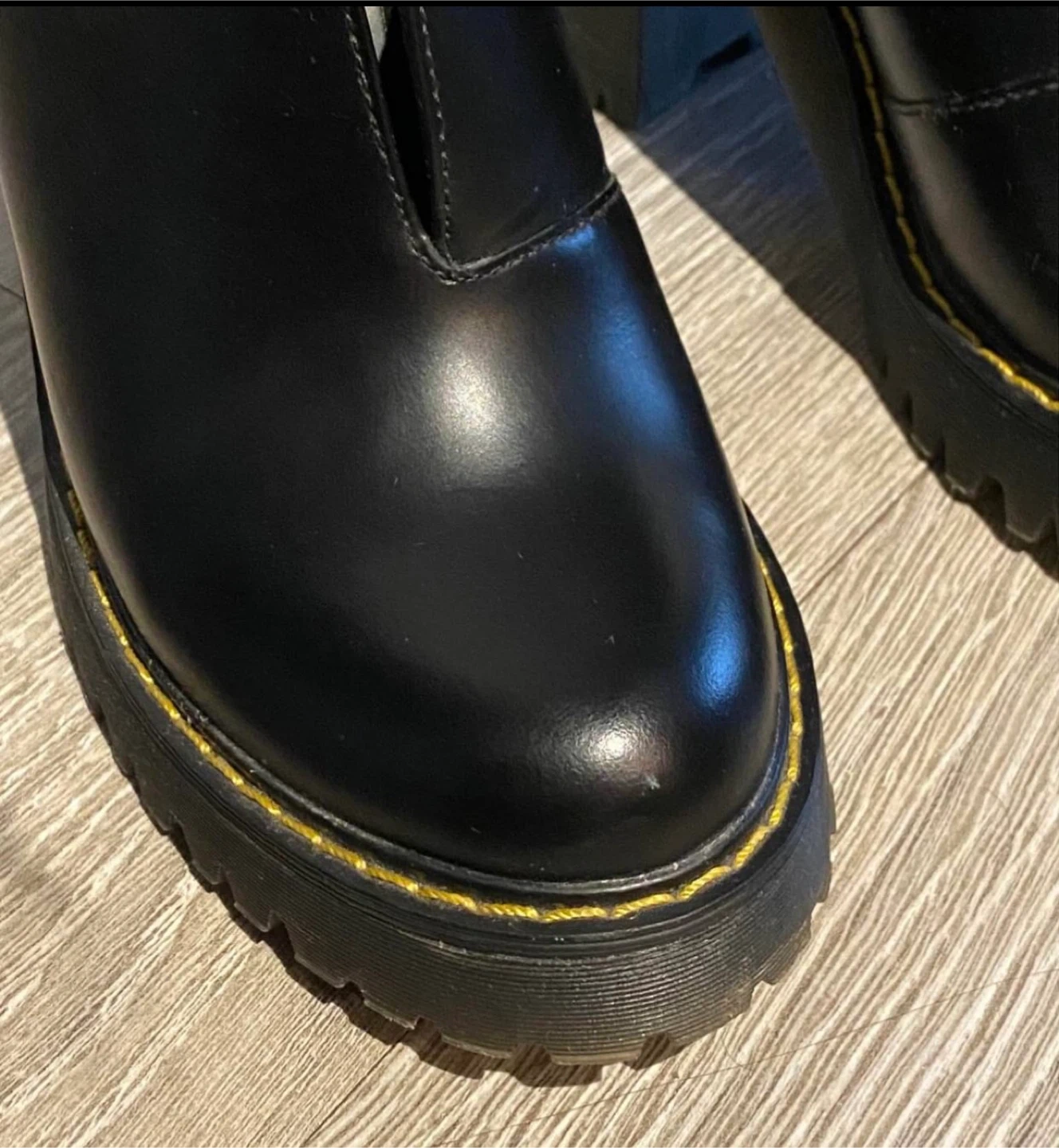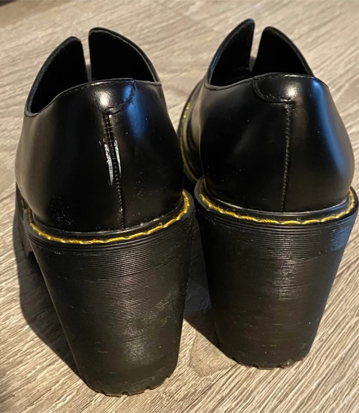 Dr. Martens Cordelia heels. Size 7. Platform sole and a chunky block heel with classic yellow stitching. Just bought off marketplace and sadly slightly too big for me! Maybe they’ll get the love and wear they deserve from you.