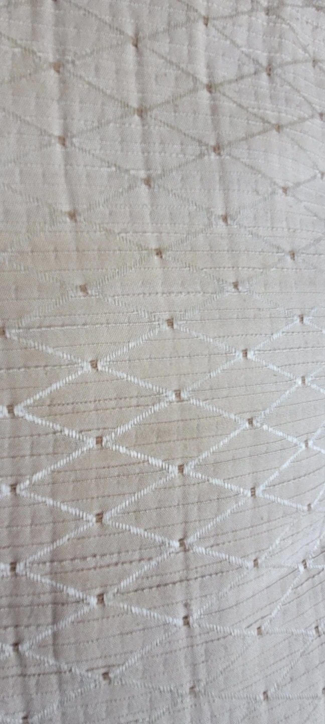 Two cream-coloured decorative throw pillows. They feature a diamond-stitched pattern with small textured dots. These pillows are perfect for adding a cozy touch to any sofa or armchair.