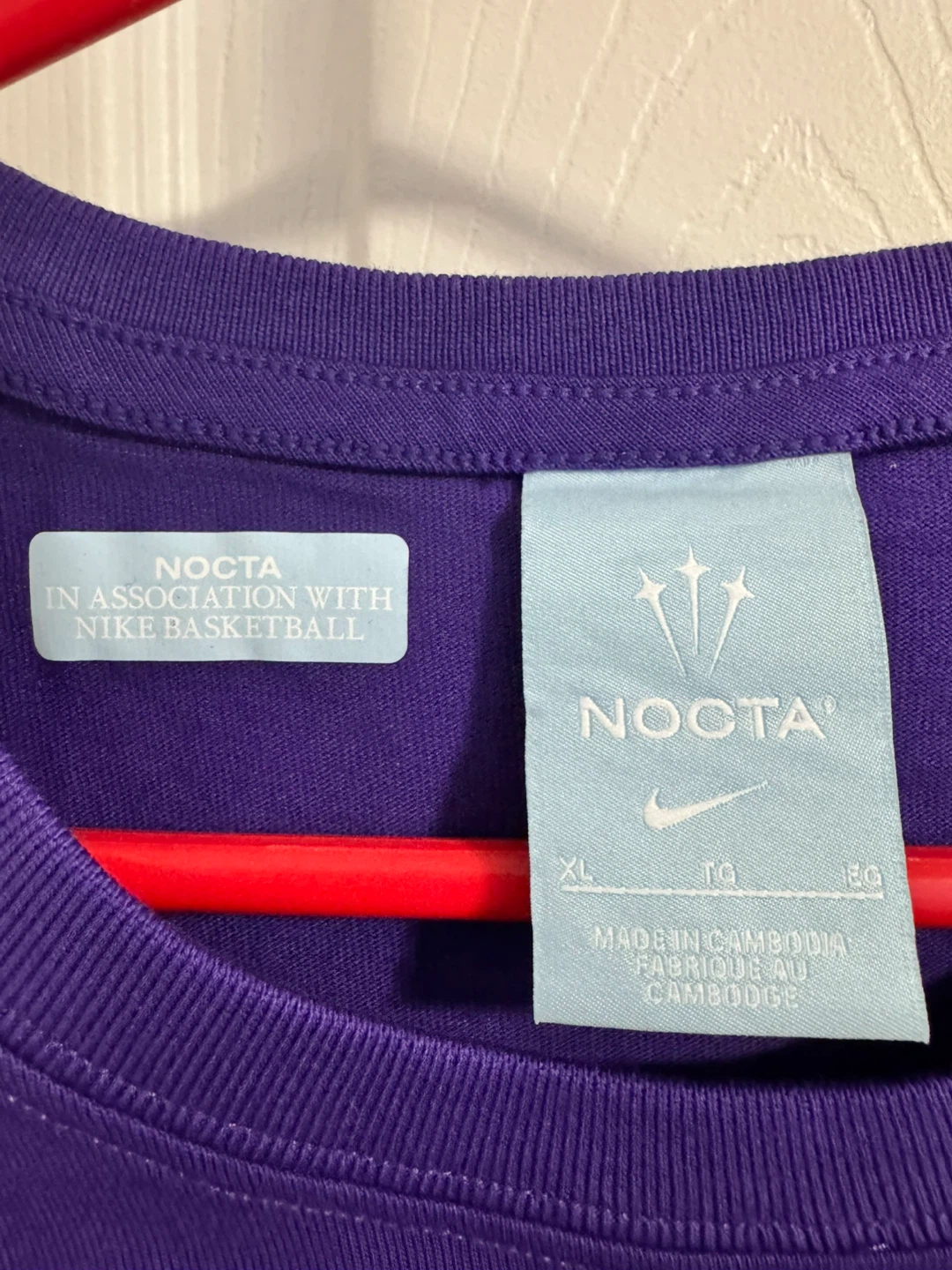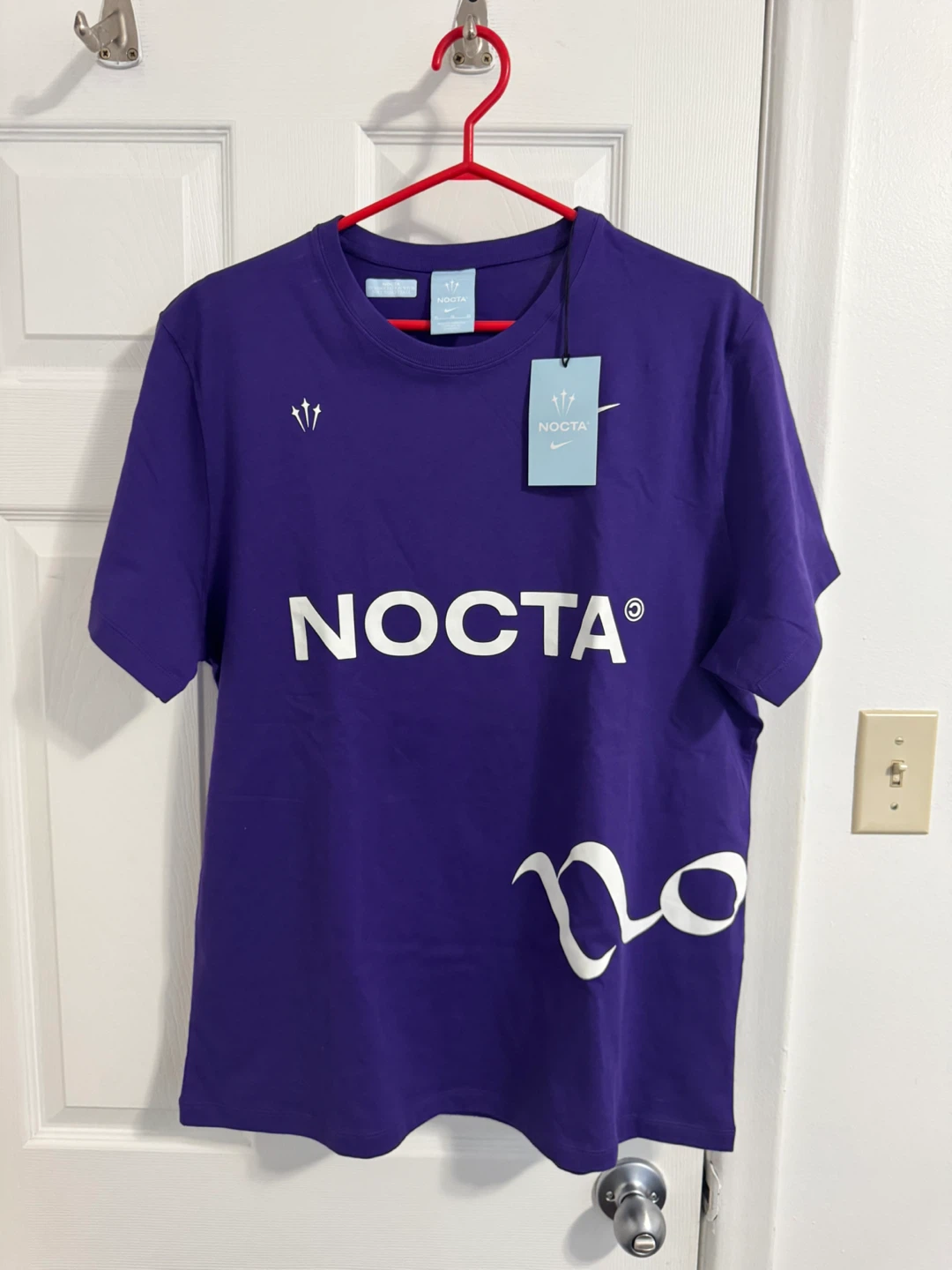 This is a brand new Nike NOCTA T-shirt in purple, size XL! The shirt features the NOCTA logo on the front and a unique design on the back. It's in perfect condition, never worn and ready for a new owner