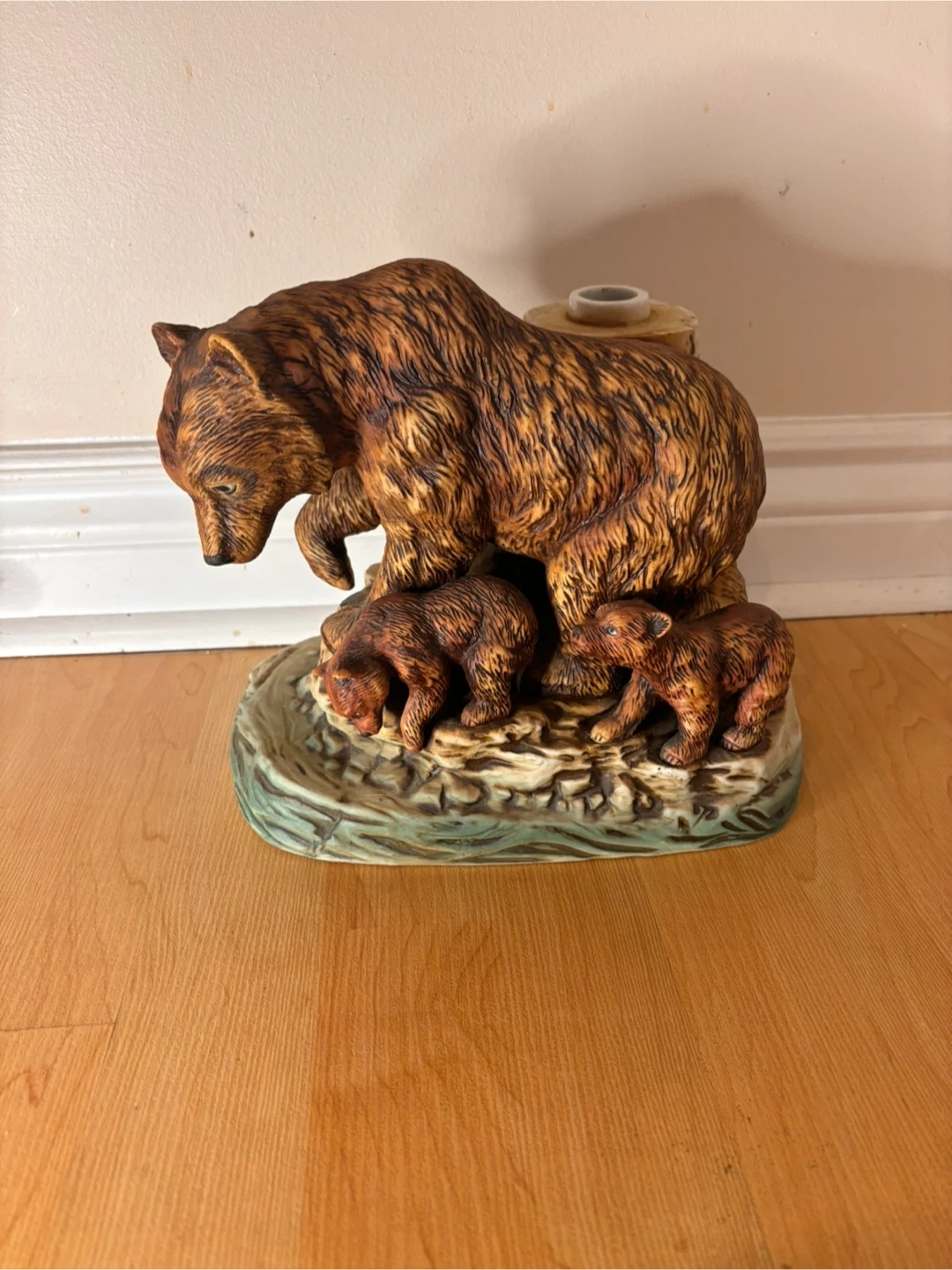 The sculpture is in very good vintage condition with no cracks or chips. The original gold plaque remains intact (shows light wear from age, see pictures), and the detailing on the bears and base is beautifully preserved. The original stopper is missing, priced accordingly. Sad to see it go, only selling because we are downsizing.