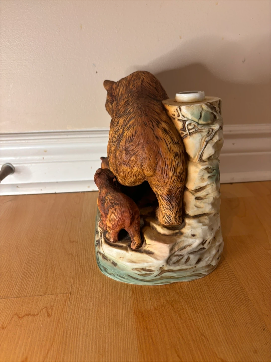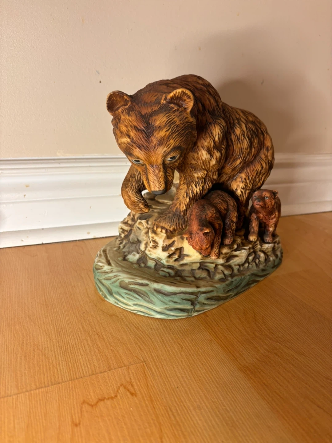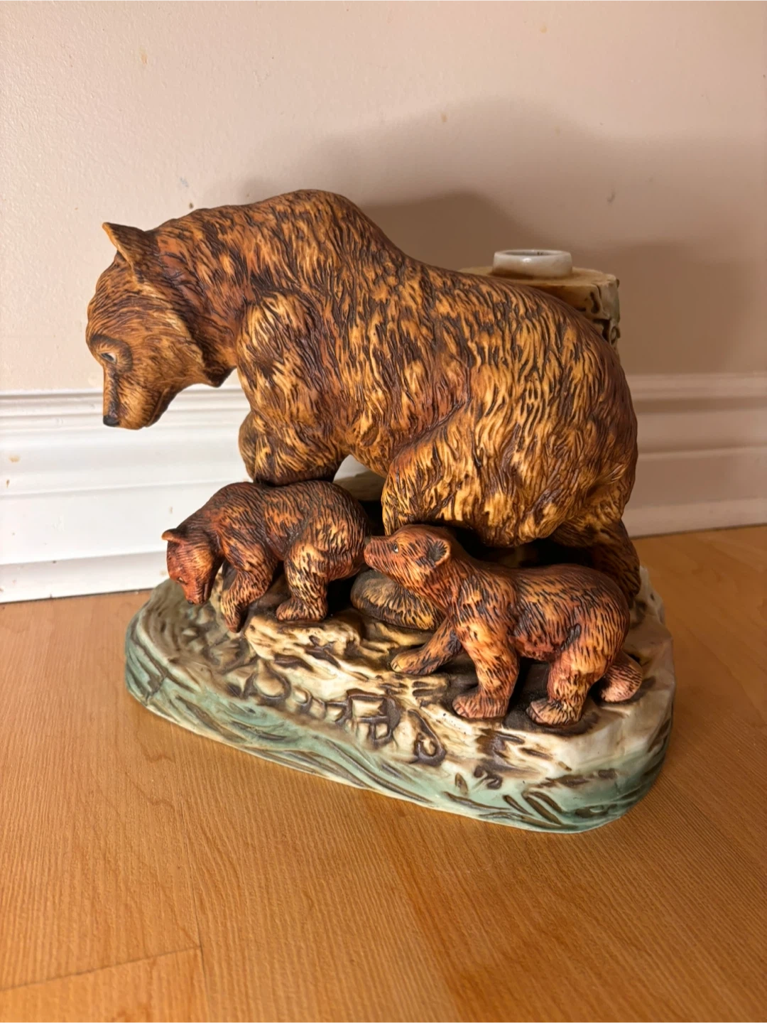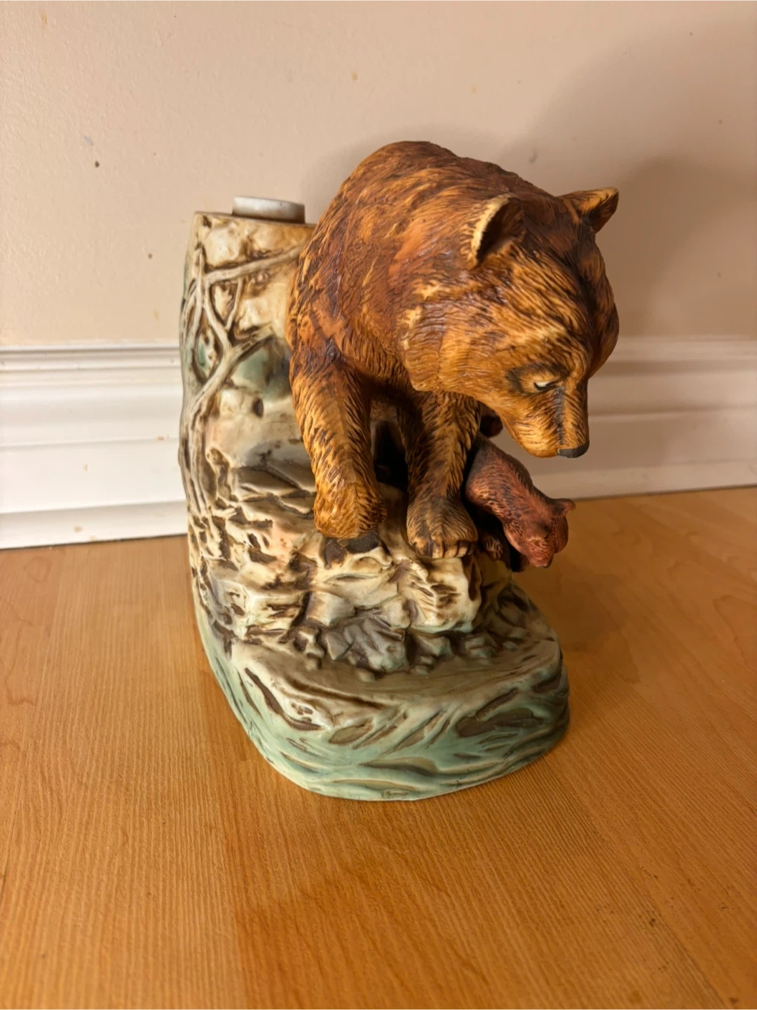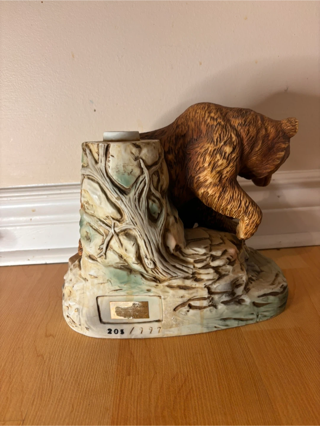 The sculpture is in very good vintage condition with no cracks or chips. The original gold plaque remains intact (shows light wear from age, see pictures), and the detailing on the bears and base is beautifully preserved. The original stopper is missing, priced accordingly. Sad to see it go, only selling because we are downsizing.