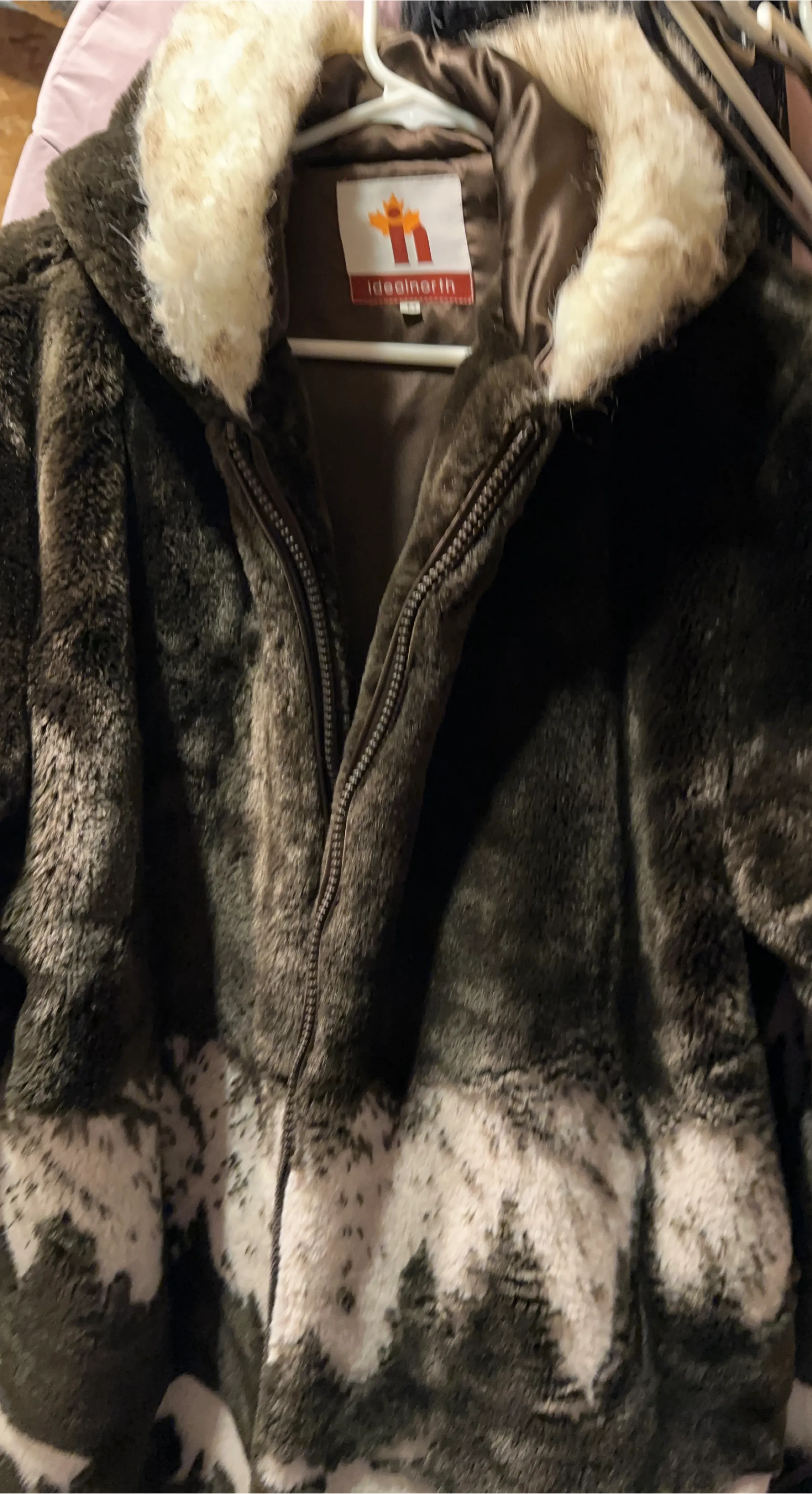 Cozy up with this Ideal North faux fur coat! It's a stylish and warm addition to your wardrobe for those chilly Canadian days. The coat features a unique design at the bottom and a faux fur collar for extra comfort and warmth