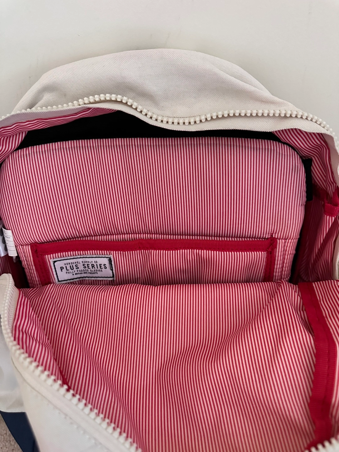 I'm selling a Herschel Supply Co. backpack. It's in great shape and ready for a new owner! The backpack features a classic design with a front pocket and a spacious main compartment with the signature Herschel red and white striped lining. Perfect for school, work, or travel!