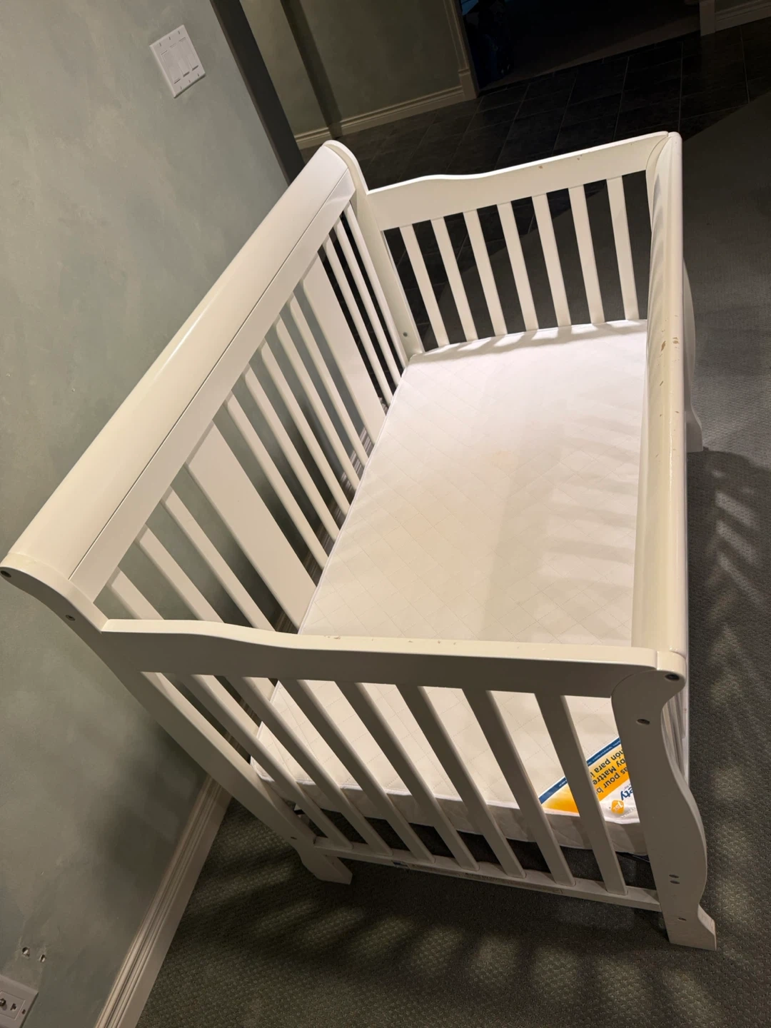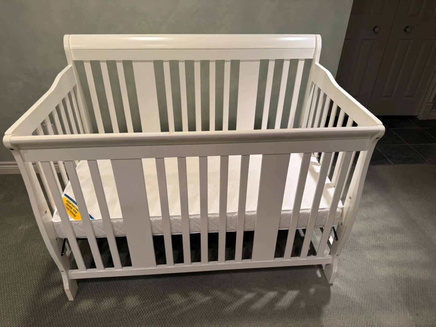 White Baby Crib with Mattress
