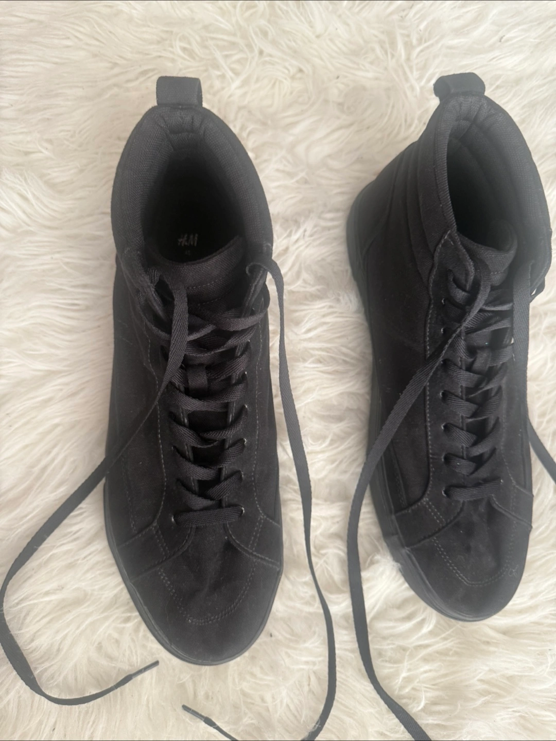 Selling a pair of black high-top sneakers from H&M! They're in great shape and ready for a new home. Perfect for casual wear or dressing up an outfit. Check out the photos for a closer look!