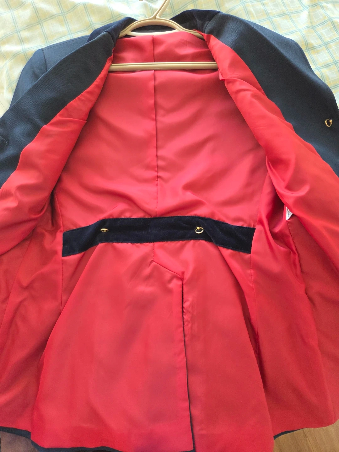 Navy Equestrian Riding Jacket with Red Lining