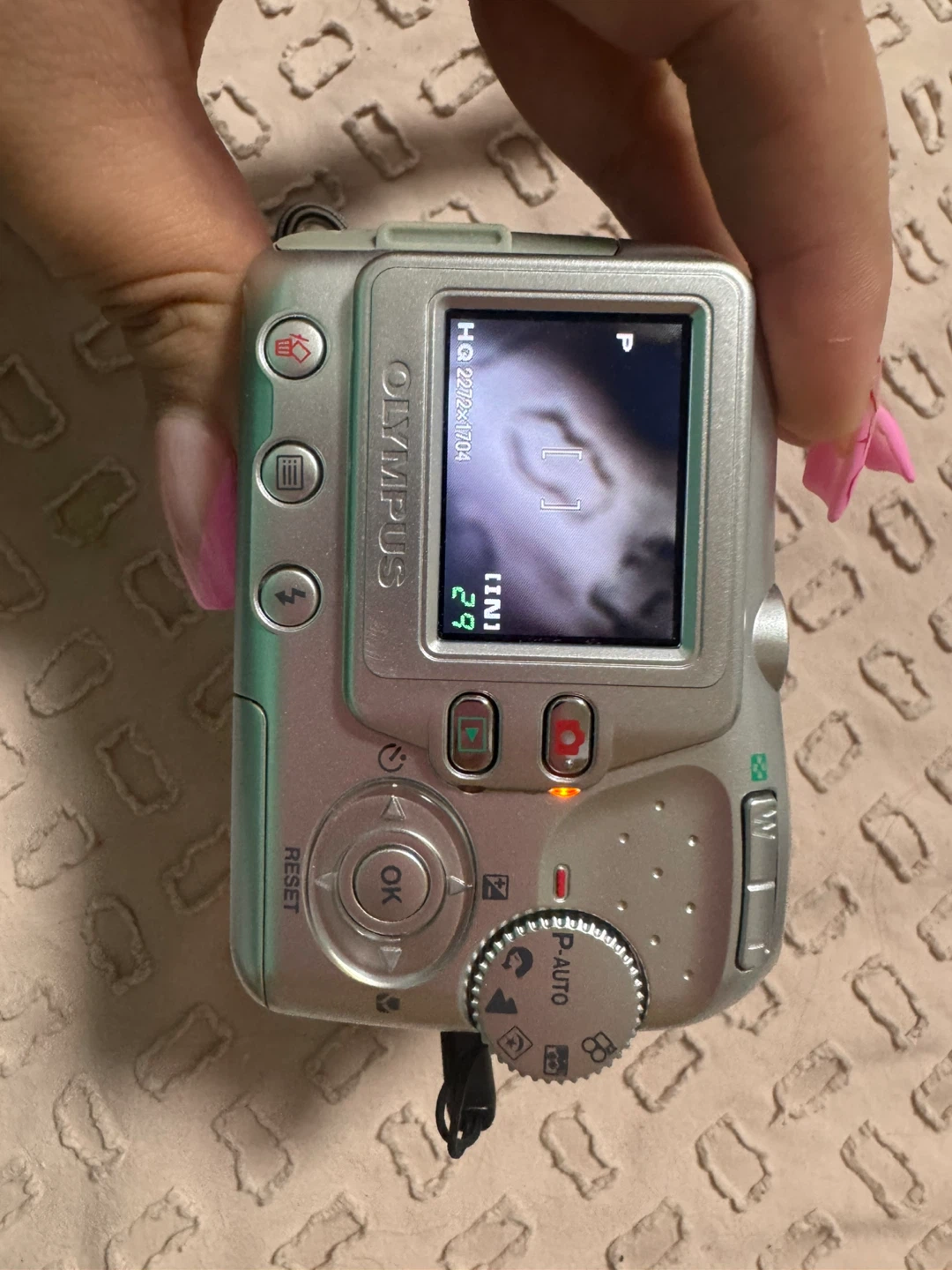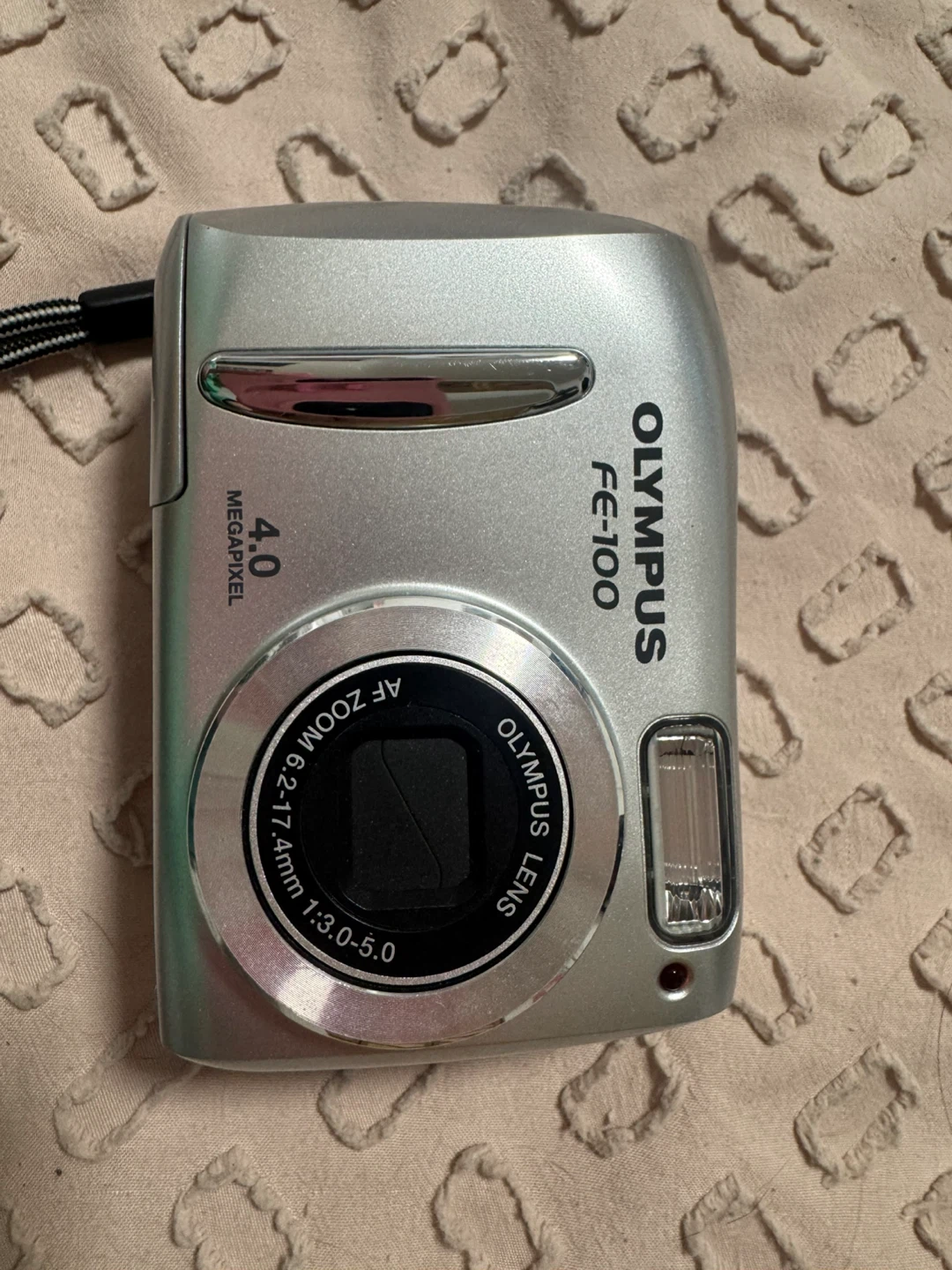 This is an Olympus FE-100 digital camera. It's 4.0 megapixels with a 2.8x optical zoom. The lens is an Olympus lens.